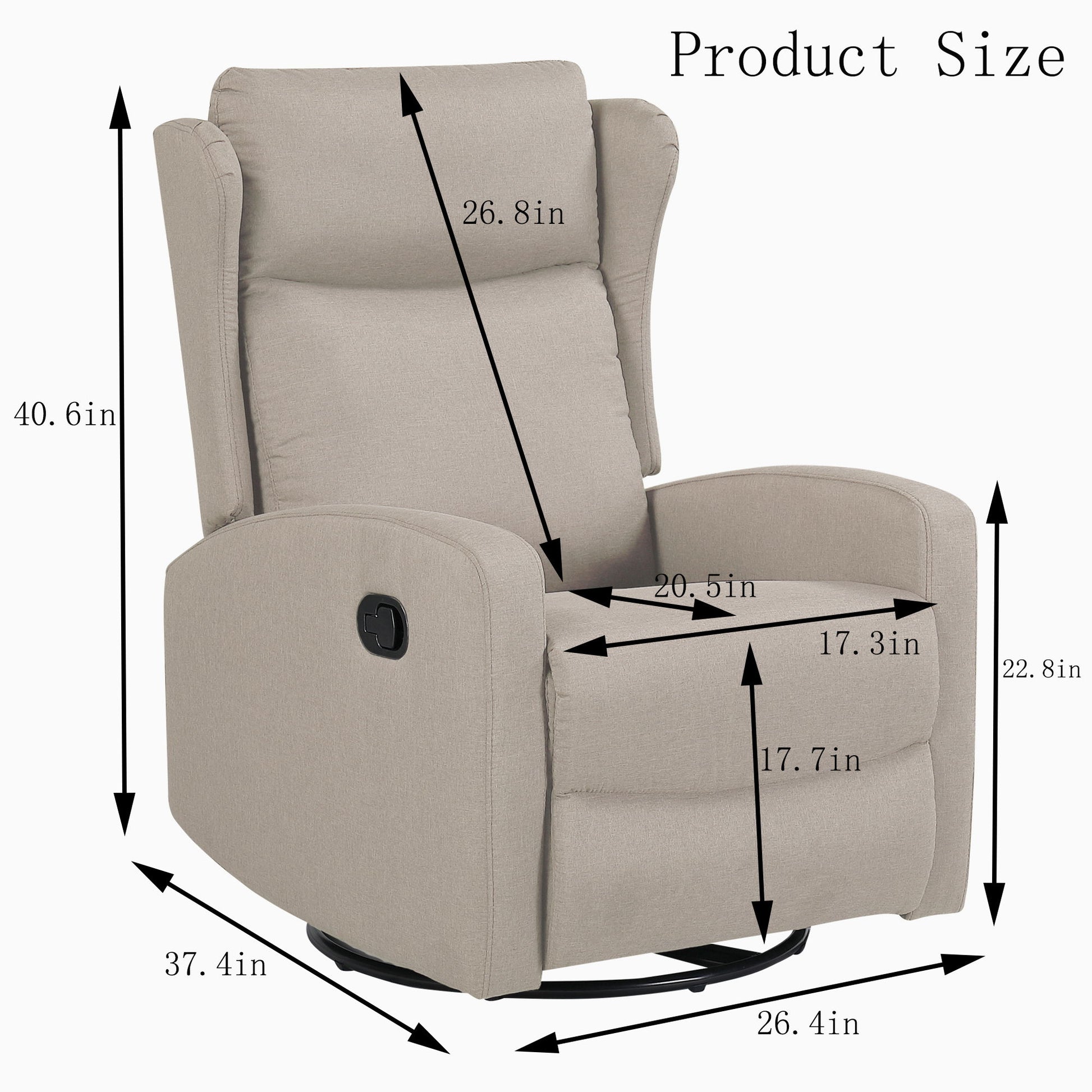 Rocking Swivel Recliner Chair For Living Room, 360 Degree Swivel, Adjustable Modern Reclining Chair, Classic And Traditional Recliner Sofa With Lumbar Support - Ligth Gray