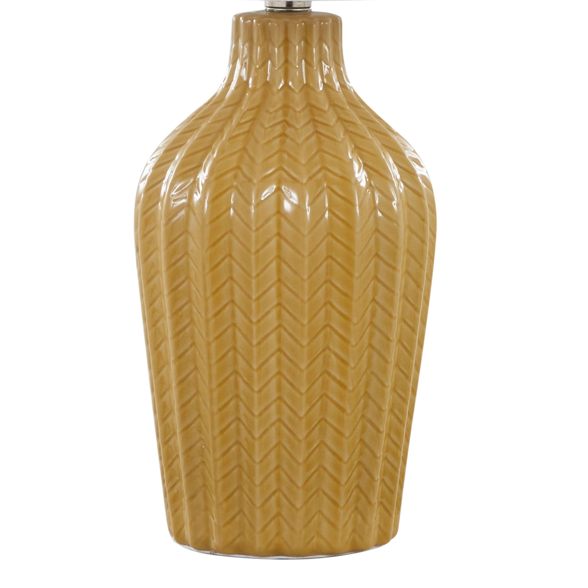 - Vibrant Design: The Rockwell Table Lamp adds a pop of color to any space with its glossy misted yellow ceramic body and eye-catching chevron pattern. Its contemporary styling is perfect for modern interiors.