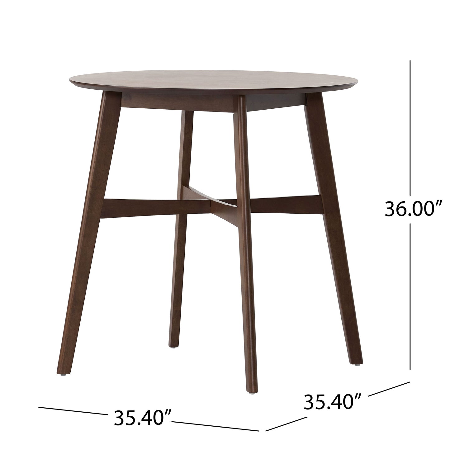 Round Counter Height Dining Table With Thick Rubberwood Legs And Support Beams - Walnut