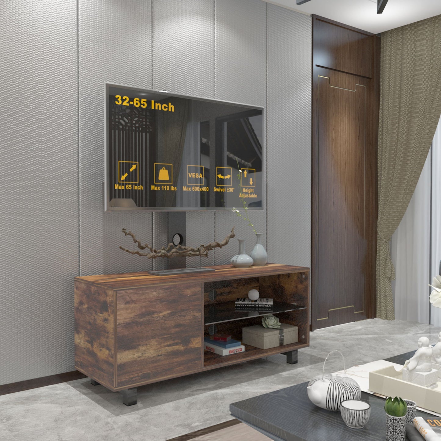 Rustic Brown TV Console With Push-To-Open Storage Cabinet For TV, Wood & Glass TV Stand For Living Room Bedroom - Rustic Brown