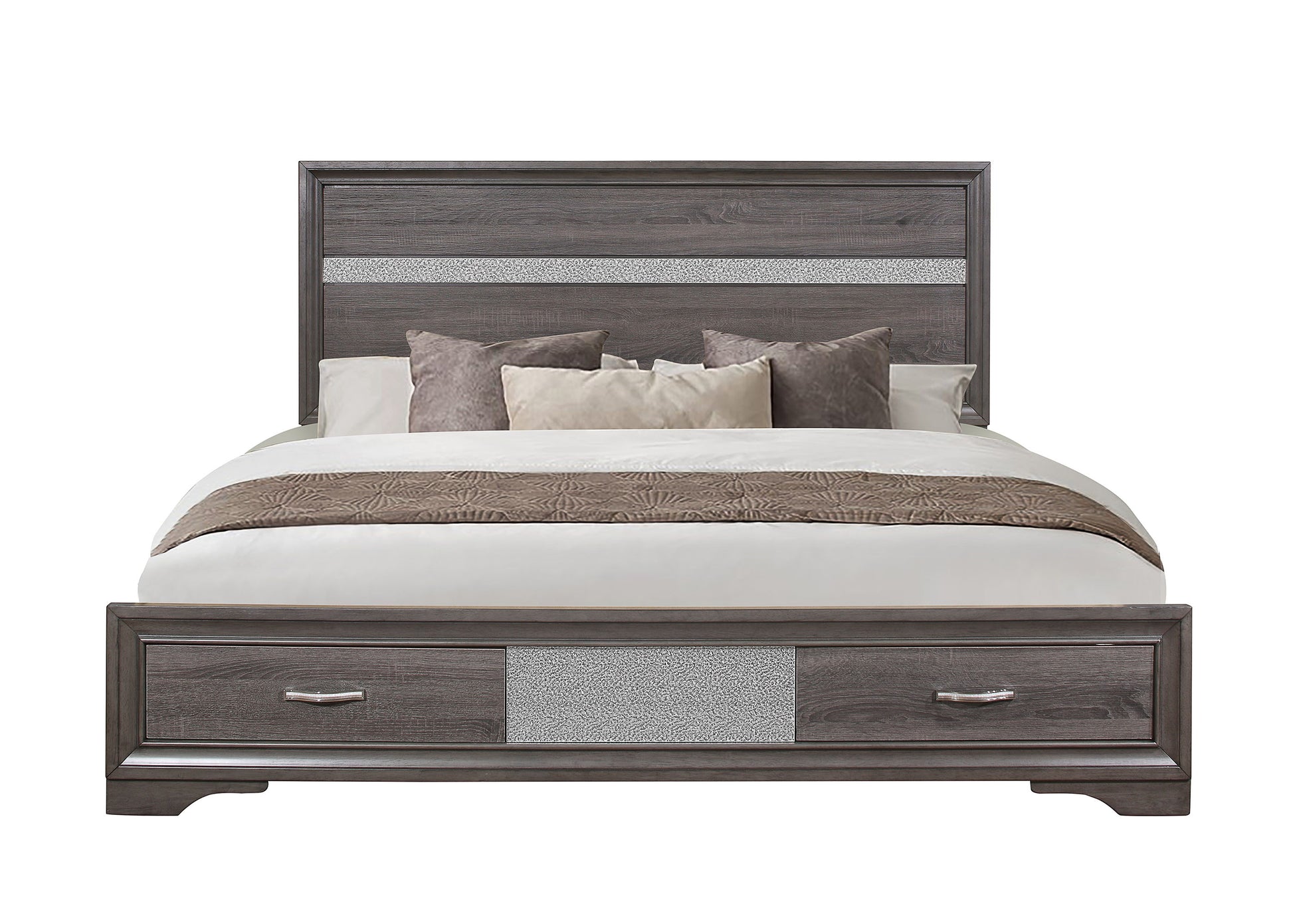 - Elegant Design: The Ryder Sparkle Grey King Bed features a stylish panel headboard and a two-drawer footboard, adding both functionality and modern elegance to your bedroom.