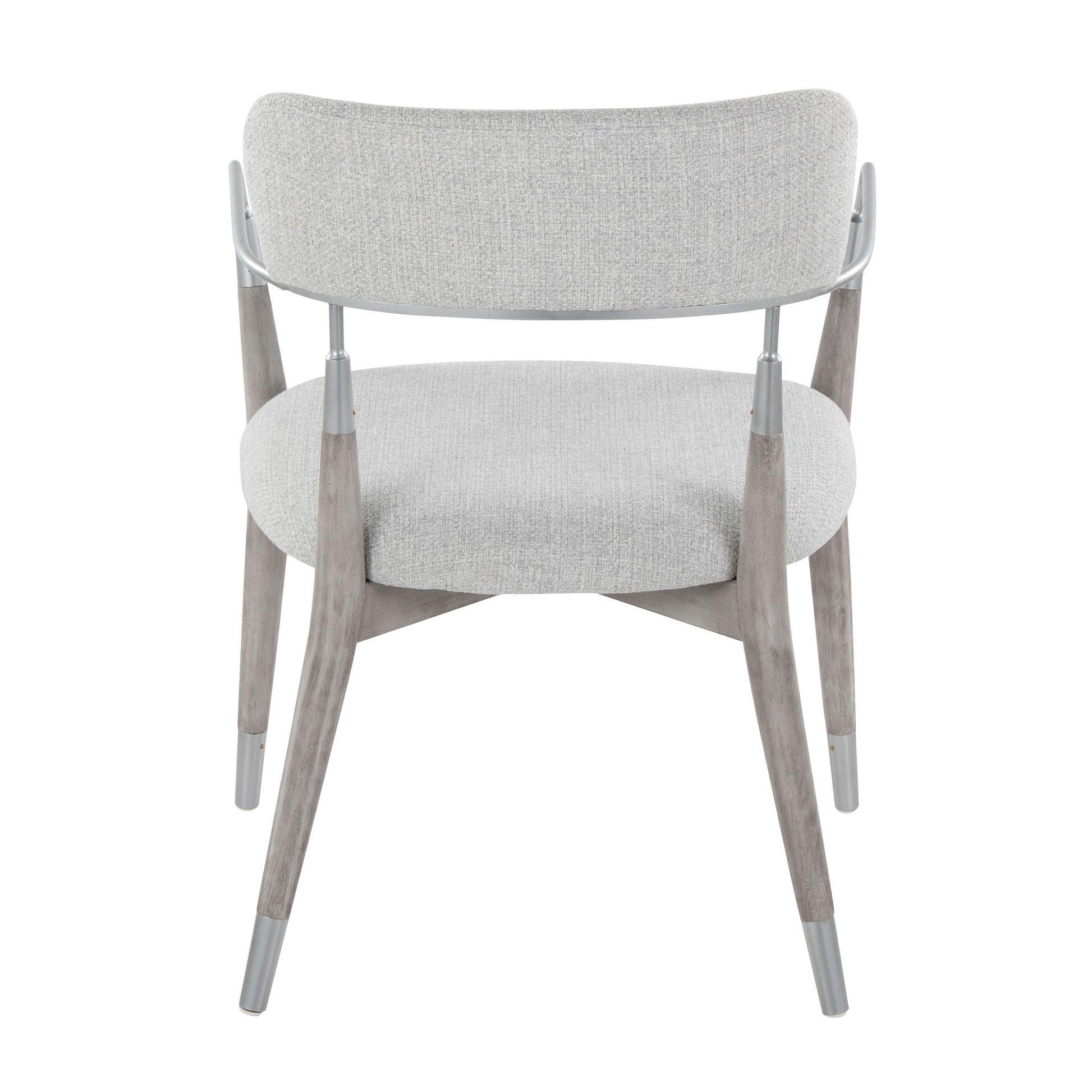 - High-Quality Materials: Featuring a grey wood frame, stylish fabric upholstered seat and backrest, and silver metal accents, these chairs combine durability with aesthetic appeal.