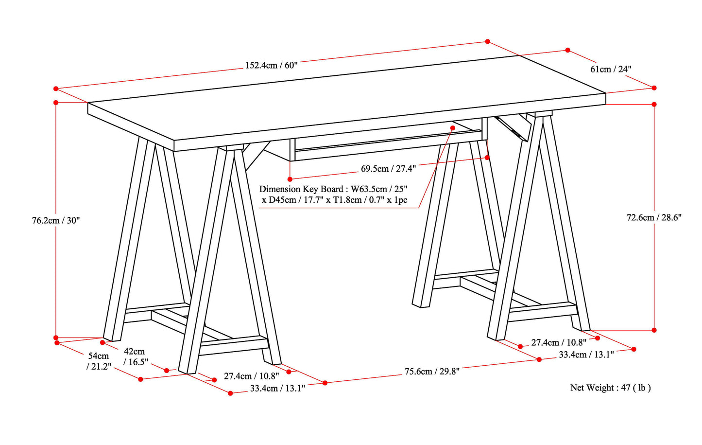 - Features a simple and wide, extra thick table top surface, integrated wood keyboard tray and sturdy sawhorse supports