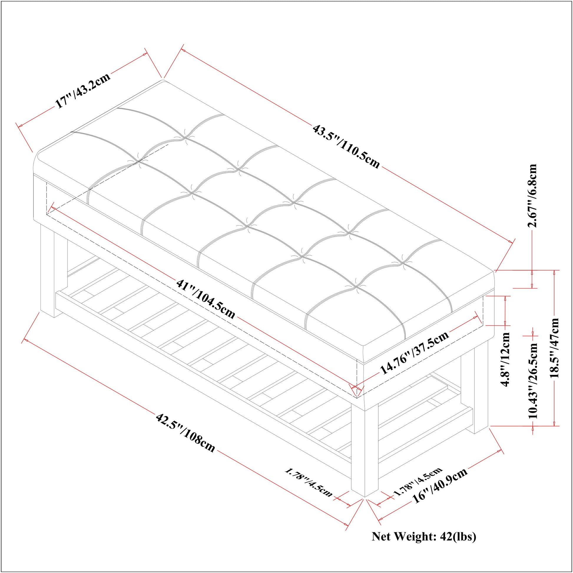 - Dimensions: 43.5"W x 17"D x 18.5"H
