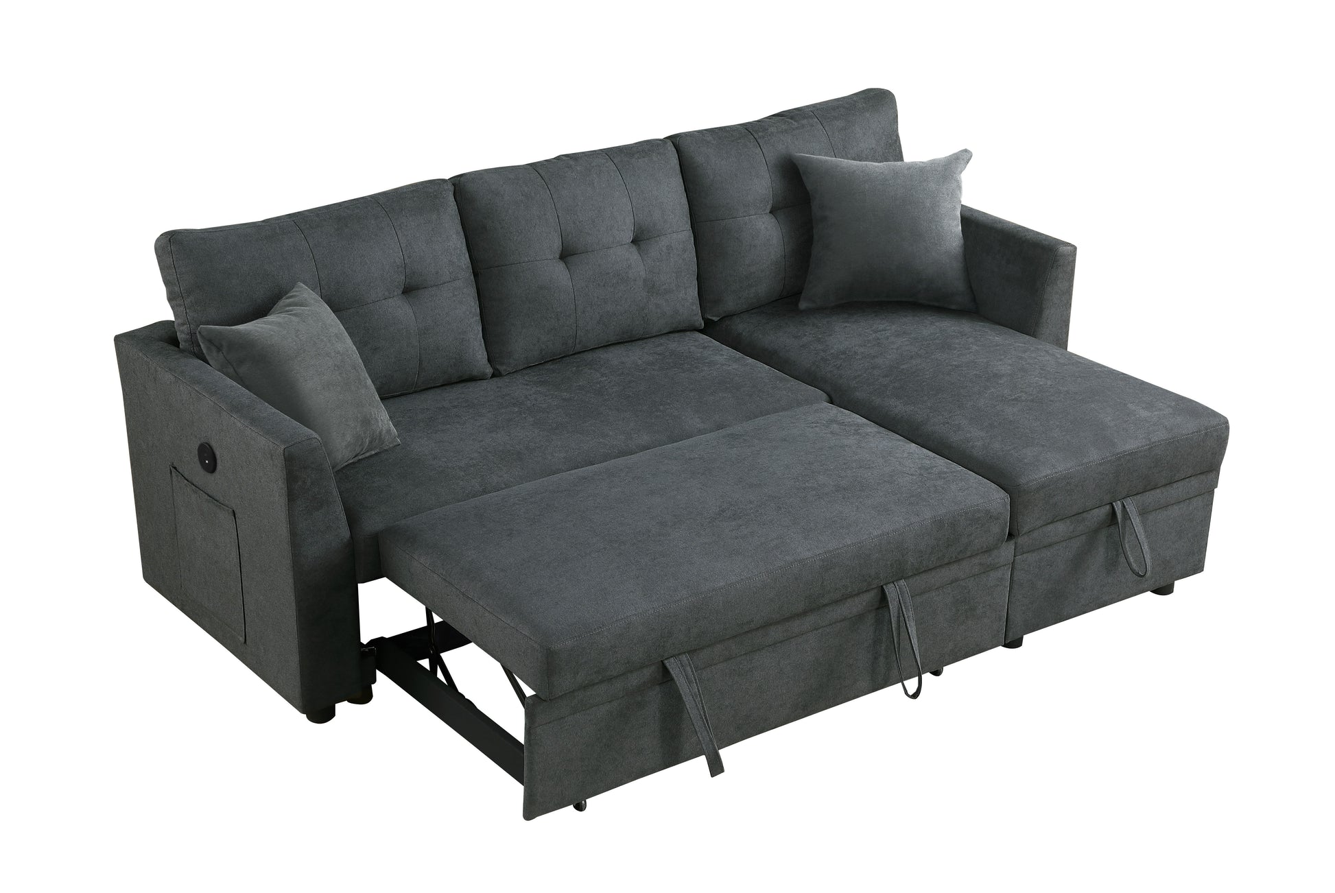 Sectional Sofa Bed L Shaped Sofa Couch Bed With USB Port, Reversible Sofa Couch Sleeper With Pull Out Bed, Chaise With Storage, Pull Out Couch For Living Room - Gray