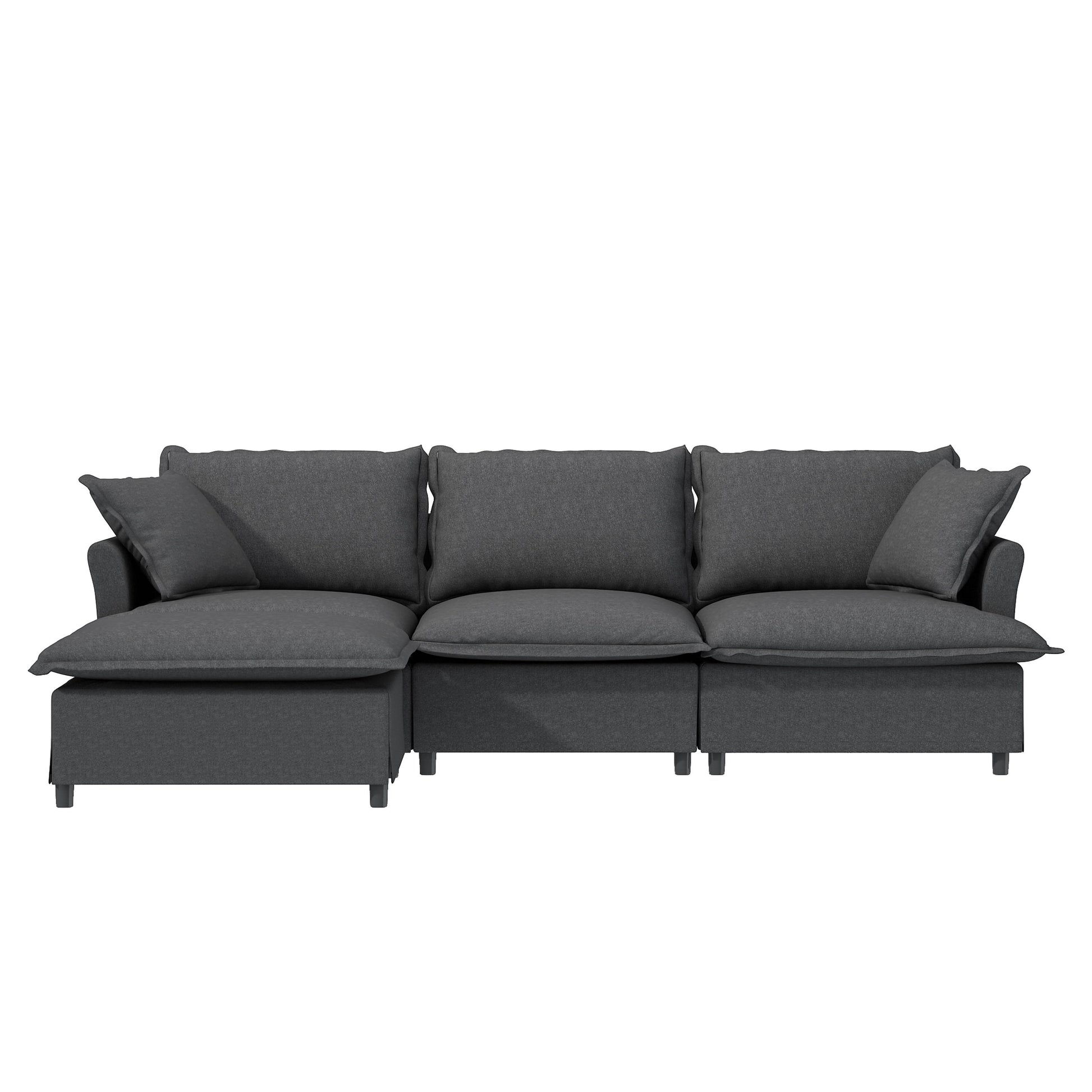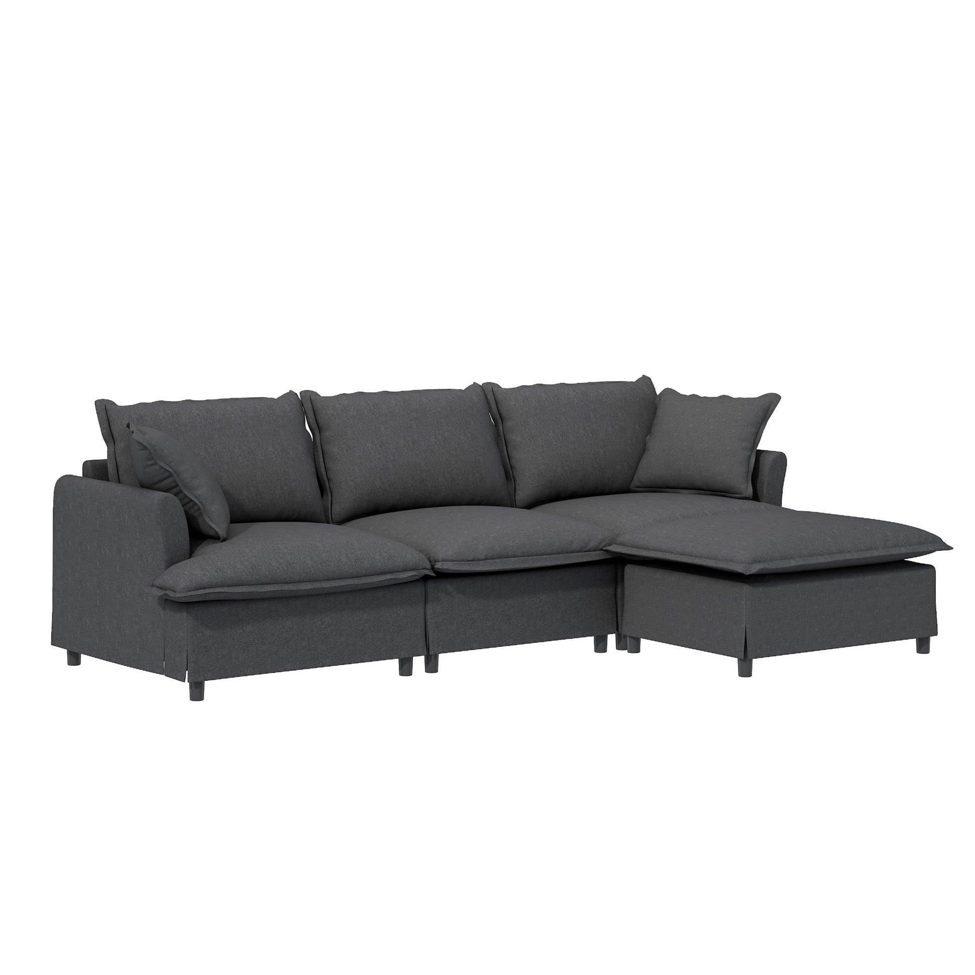 Sectional Sofa With Ottoman L Shaped Cloud Couch Set With Throw Pillows, Free Combination 4 Seat Modular Upholstered - Gray