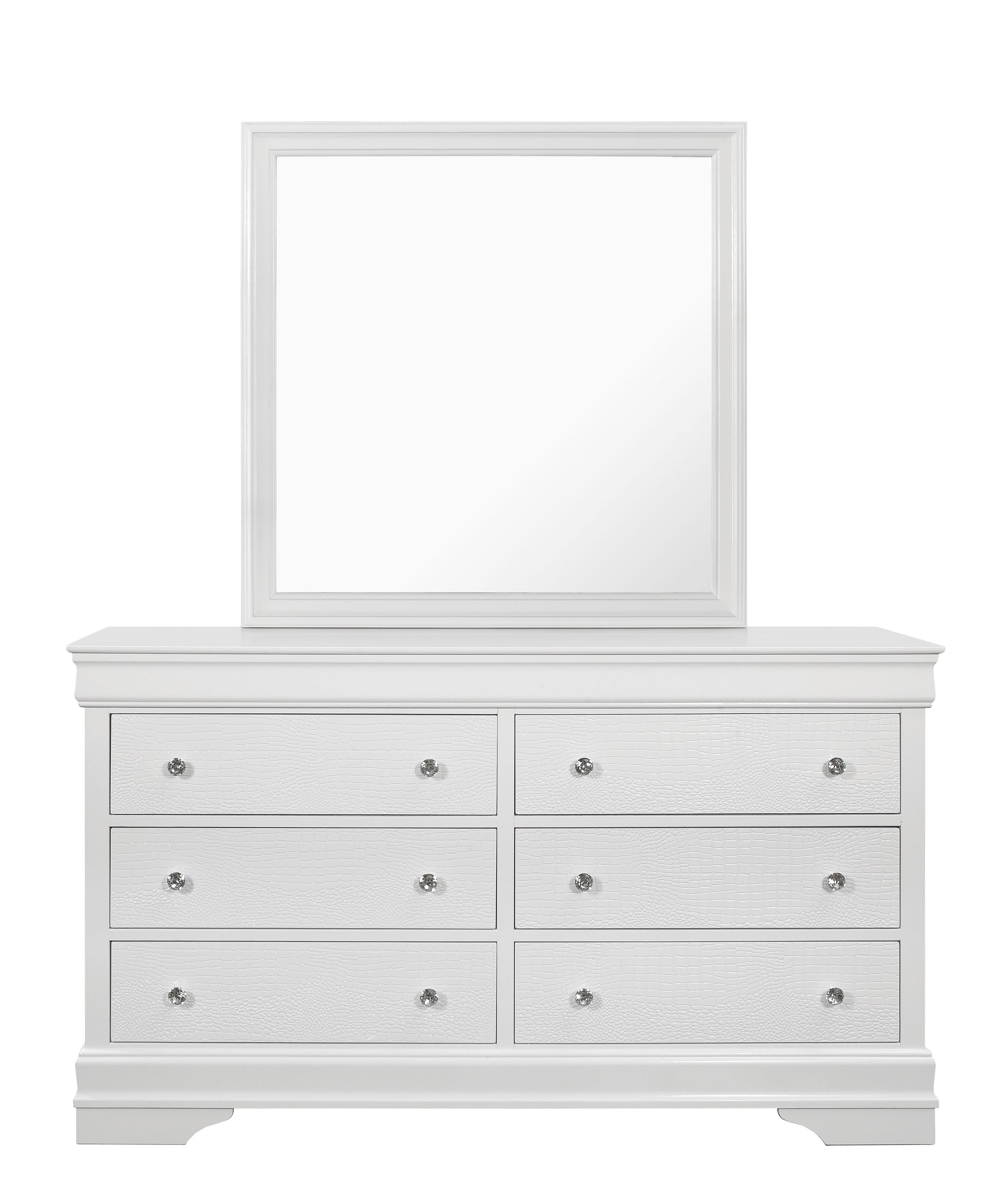 - Stylish Design: The SHAKER CROCODILE METALLIC WHITE DRESSER features a contemporary style with textured detailed drawer fronts and crystal embellished hardware, offering a sophisticated and fashionable look.