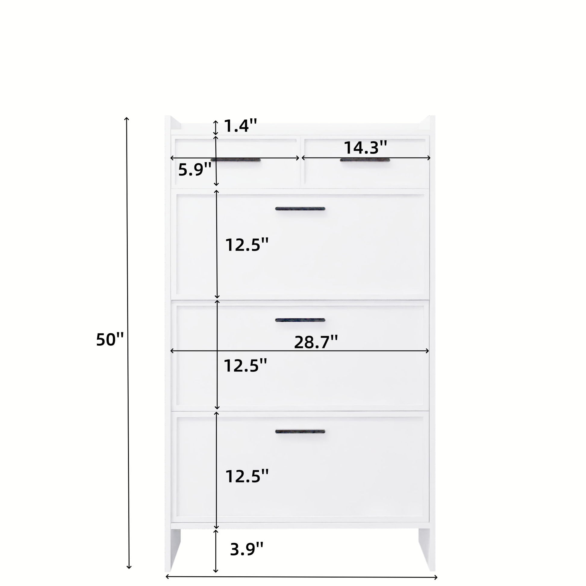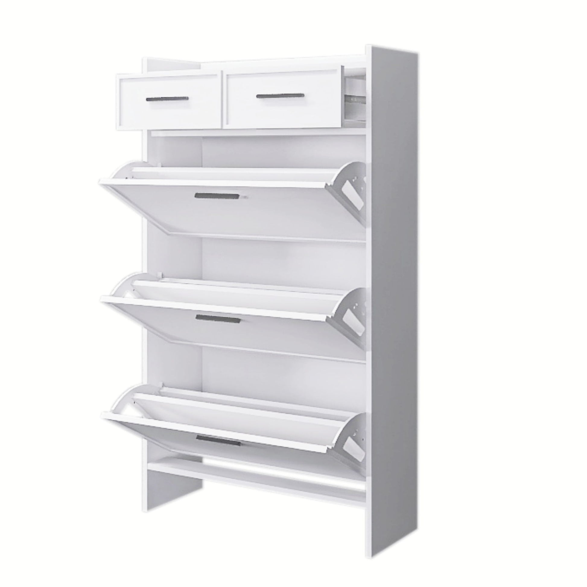 Shaker Shape Door Shoe Rack 3 Doors Shoe Cabinet With 2 Drawers With Open Space For Shoes - Matte White