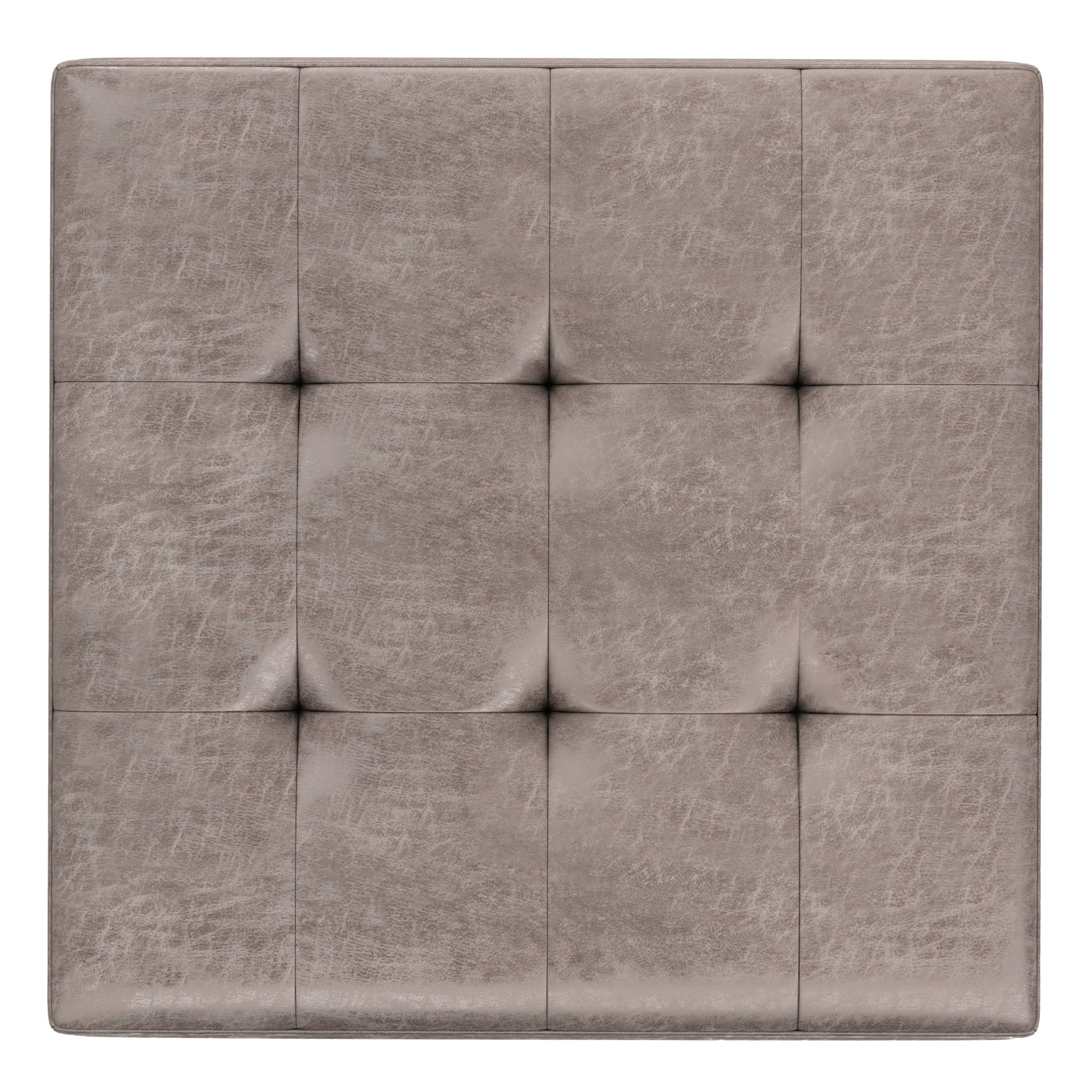 - Upholstered with a durable Distressed Grey Taupe Vegan Faux Leather