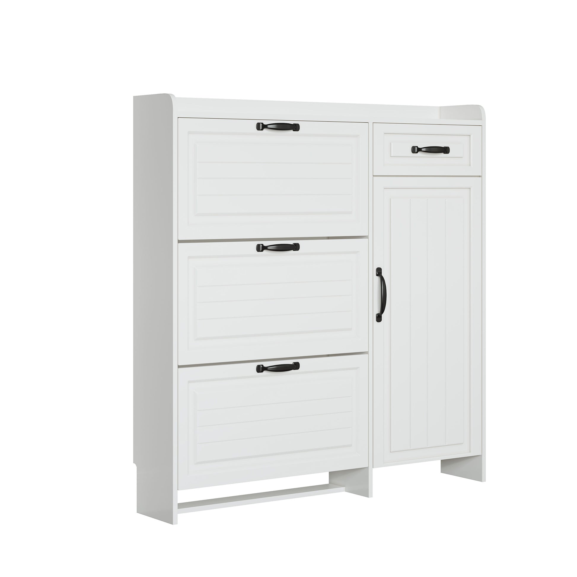 Shoe Cabinet With 4 Doors 1 Drawers, PVC Door With Shape, Large Space For Storage - White