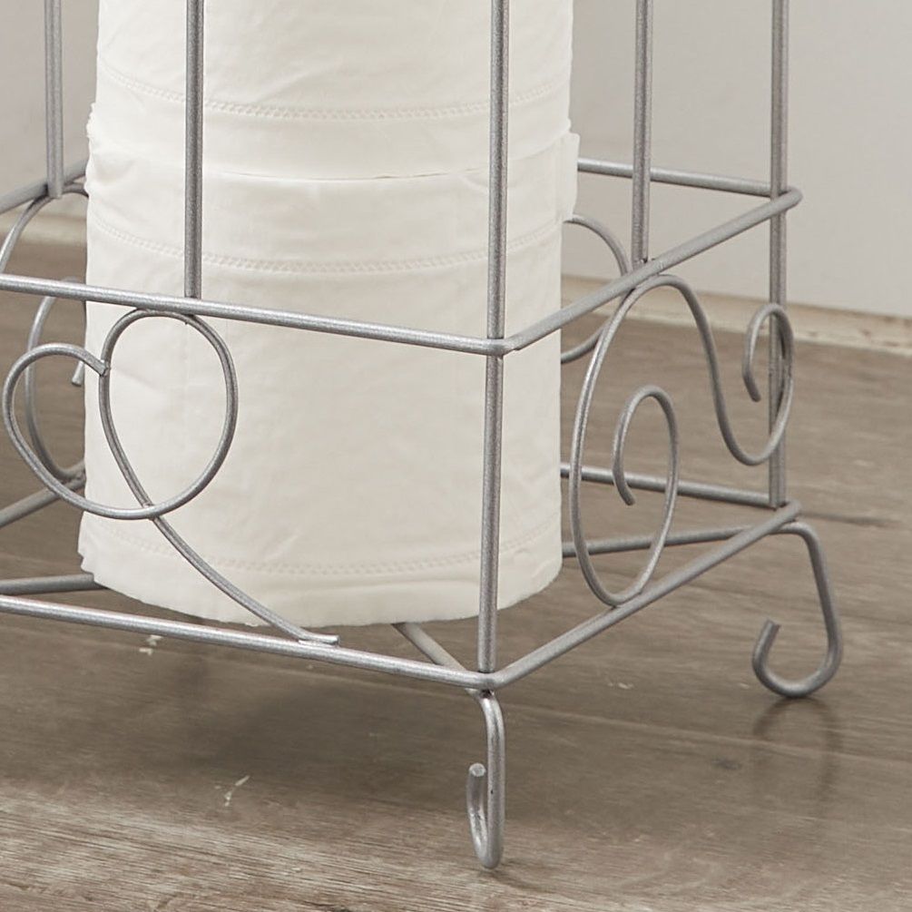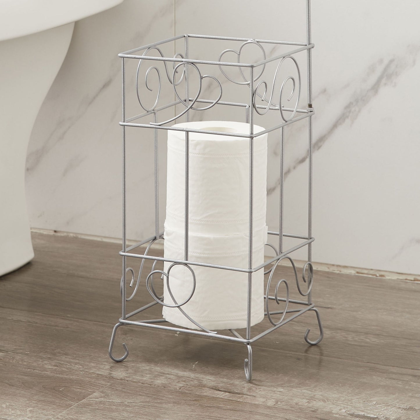 Silver Metal Frame Toilet Paper Holder Stand, Bathroom Tissue Organizer - Silver