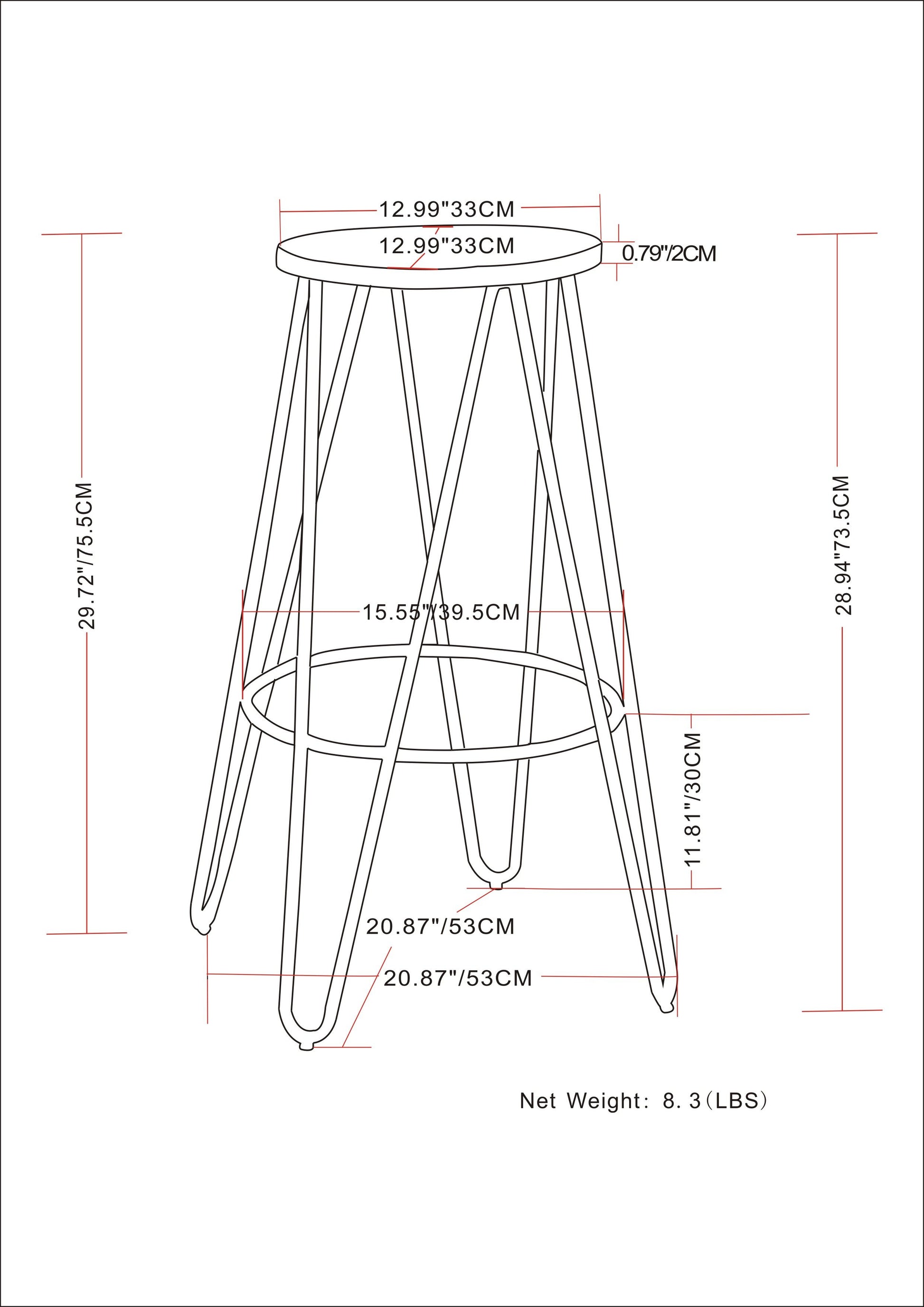 - Features round solid wood seat and black hair pin legs, comfortable foot rest provides extra stability