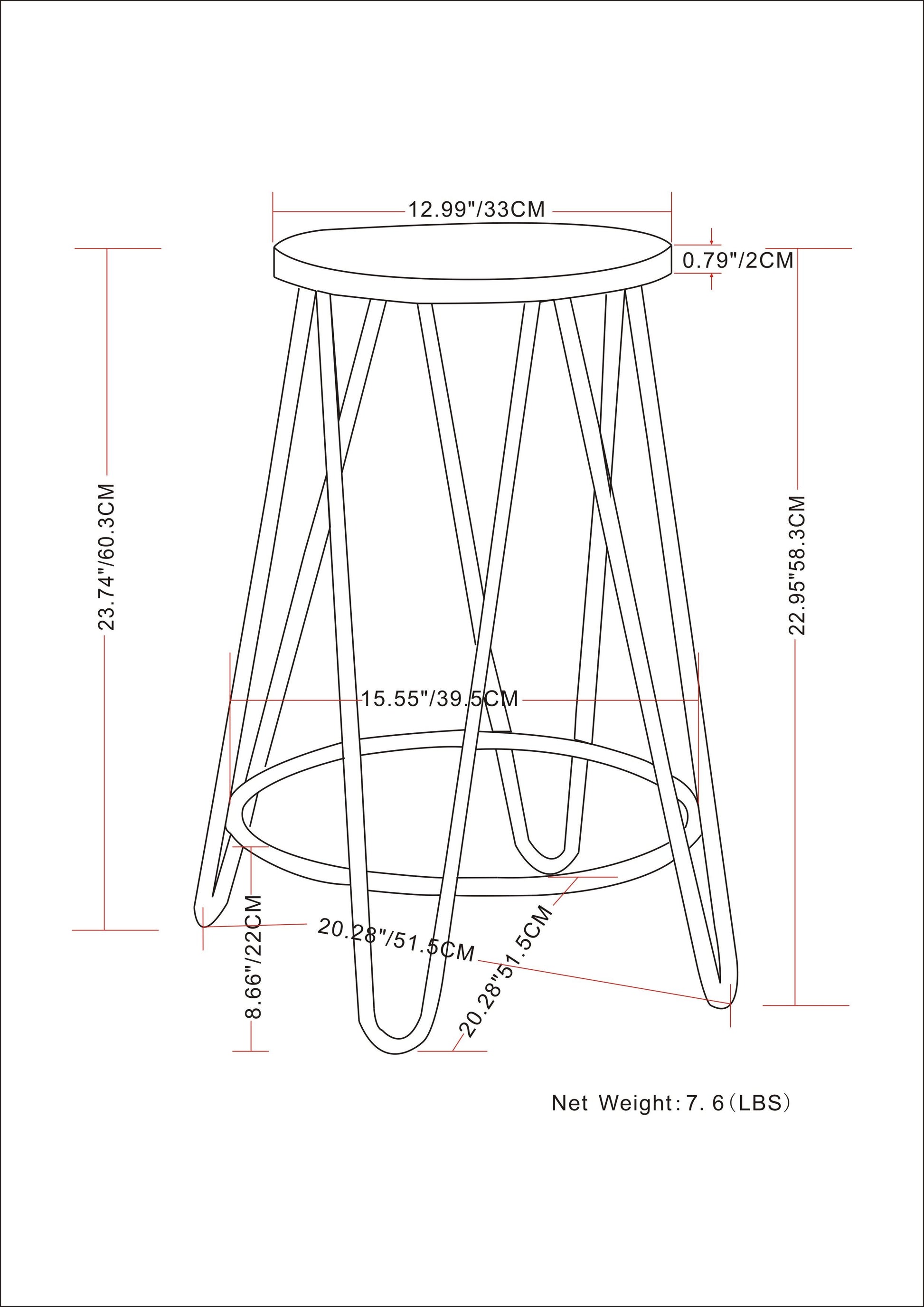 - Features round solid wood seat and black hair pin legs, comfortable foot rest provides extra stability