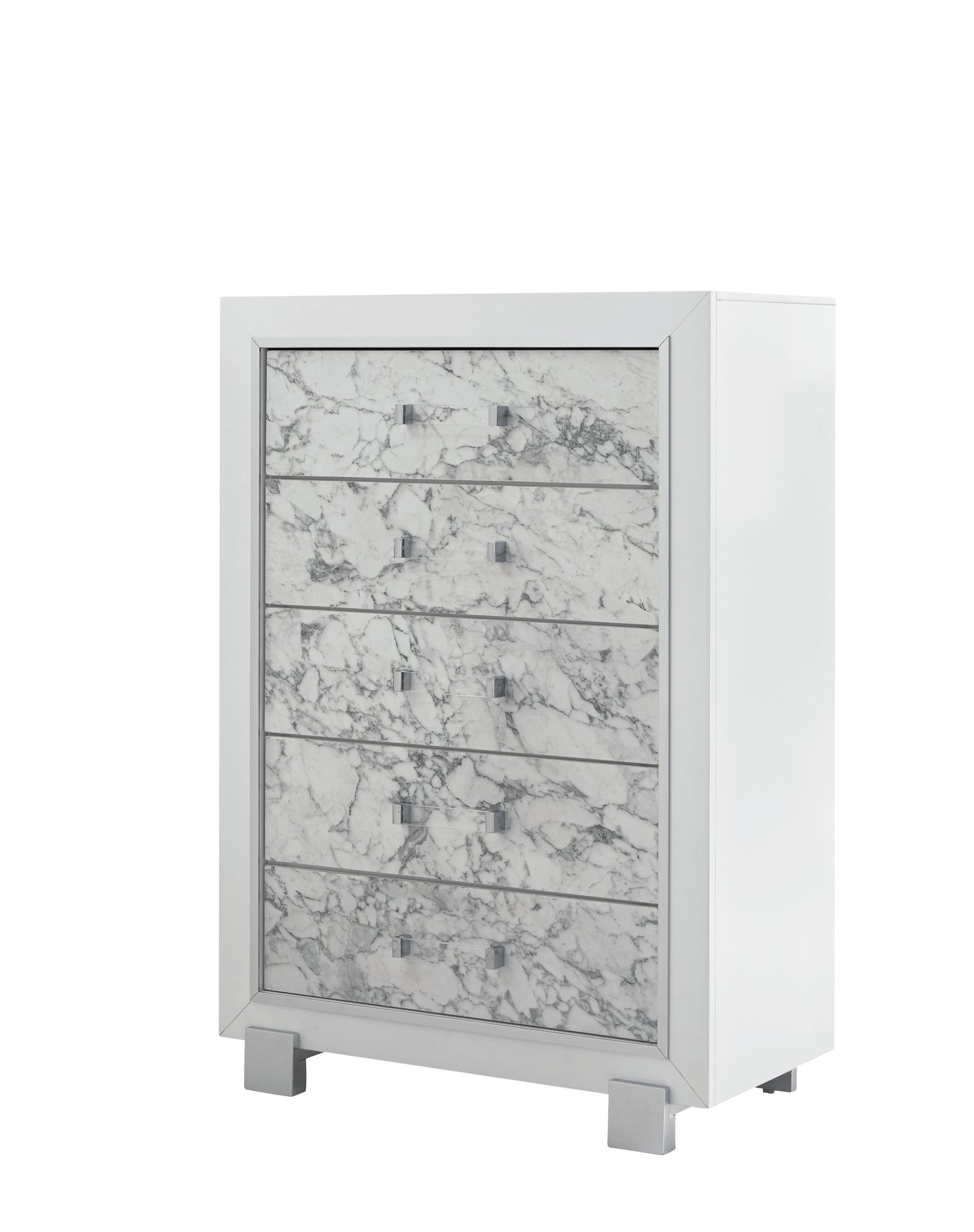 - Elegant Marble Style: The SKYE Marble White Chest features marble style drawer fronts, adding a touch of sophistication and modern elegance to any room.