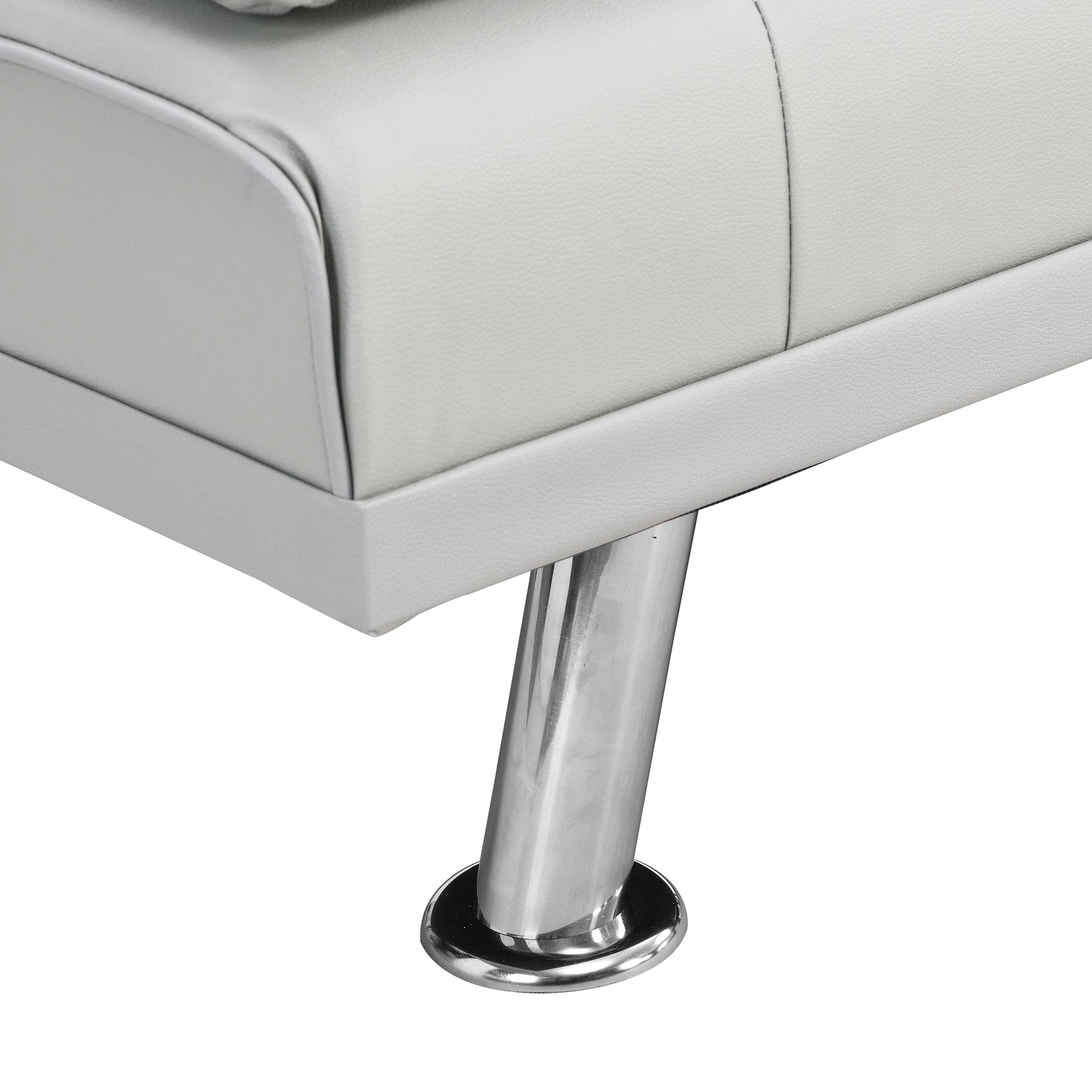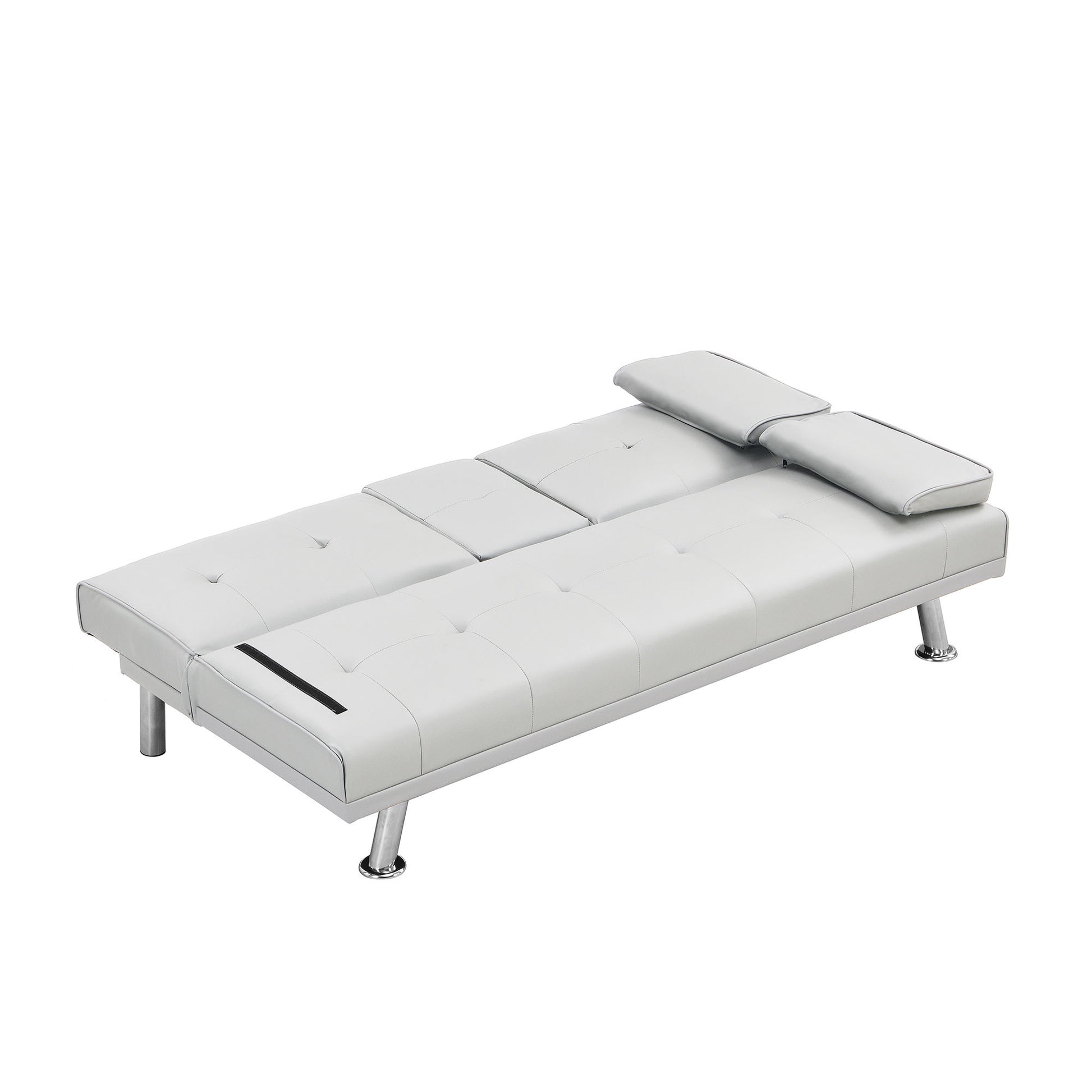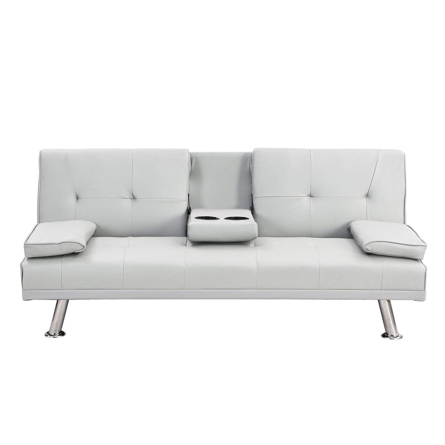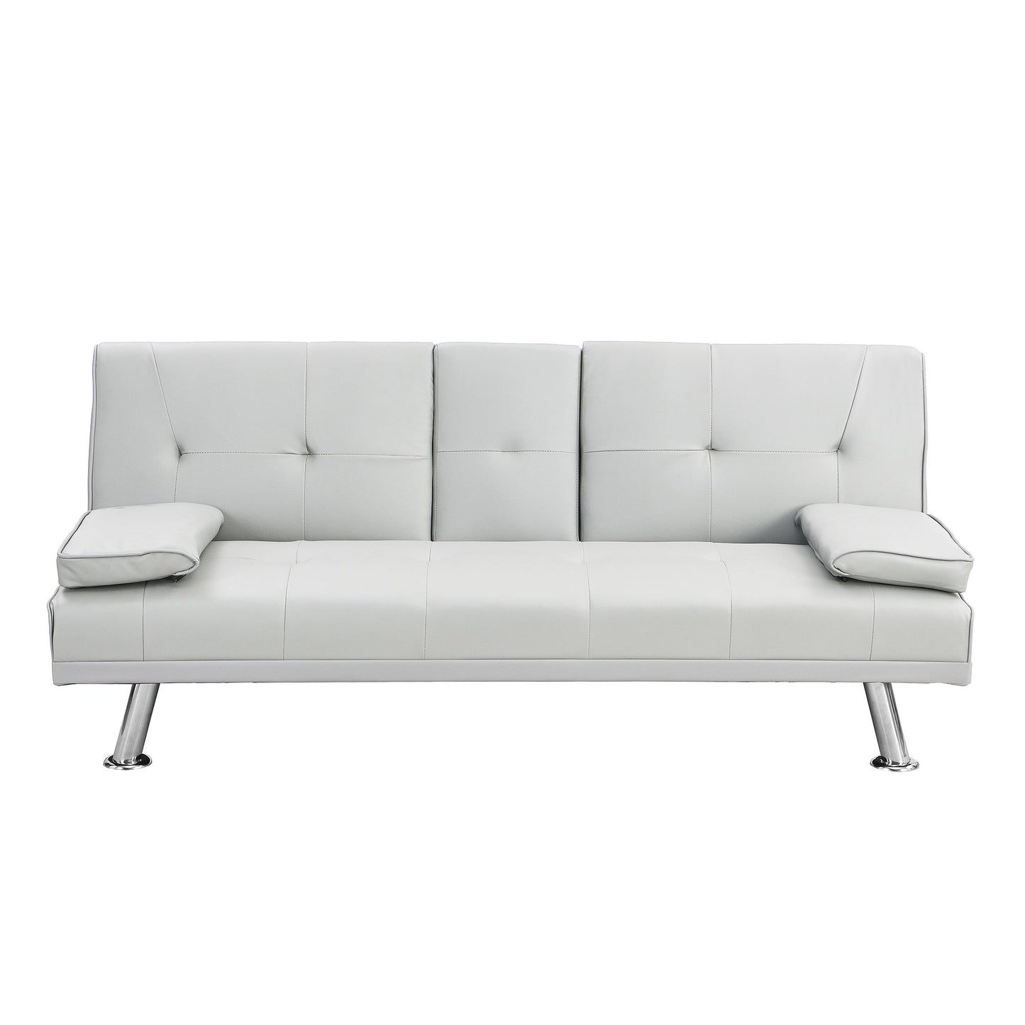 Sofa Bed With Armrest Two Holders Wood Frame, Stainless Leg, Futon - White