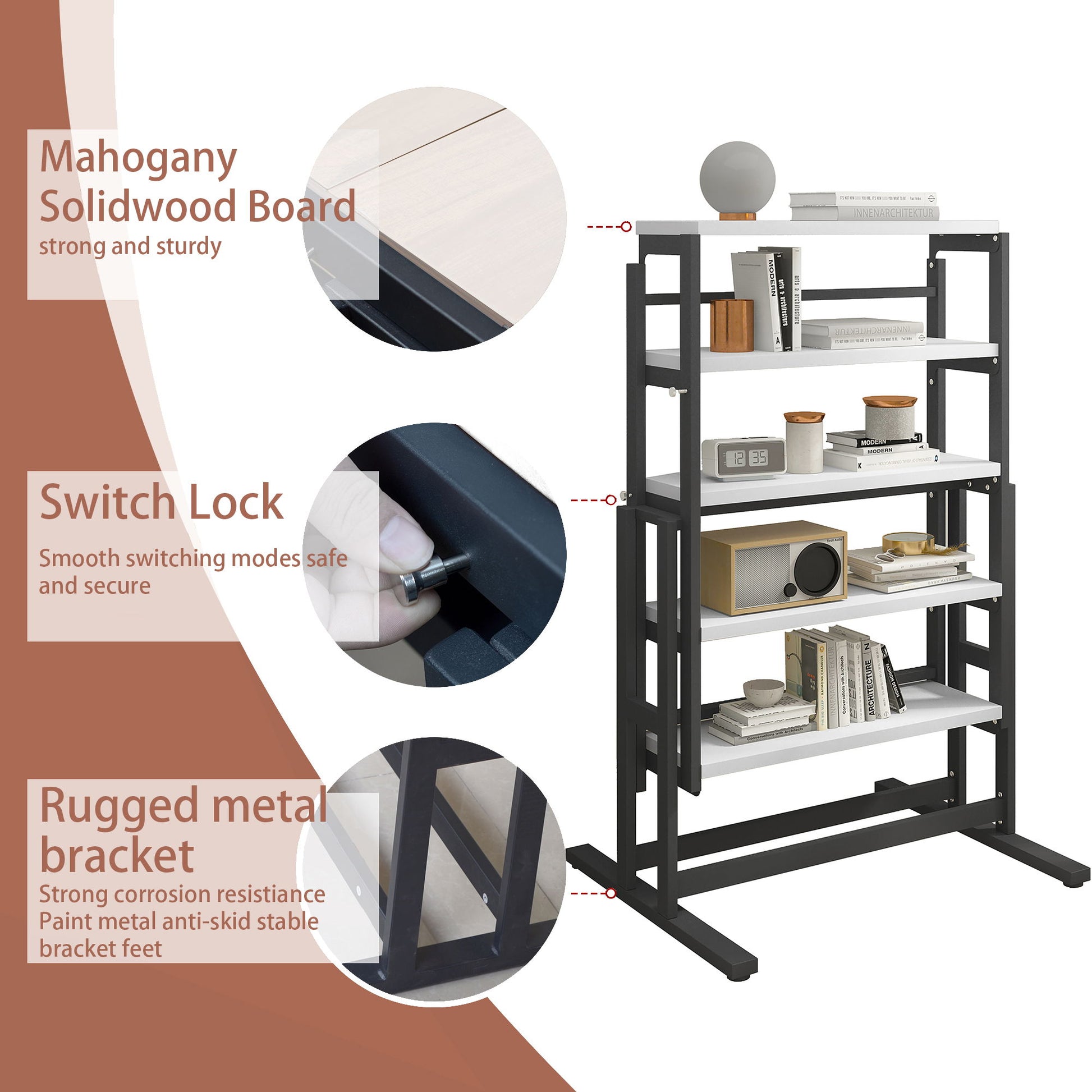 Solid Mahogany Wood Multifunction Convertible Dining Table, Free Switch Space Saving Table Shelf For Home And Studio - White