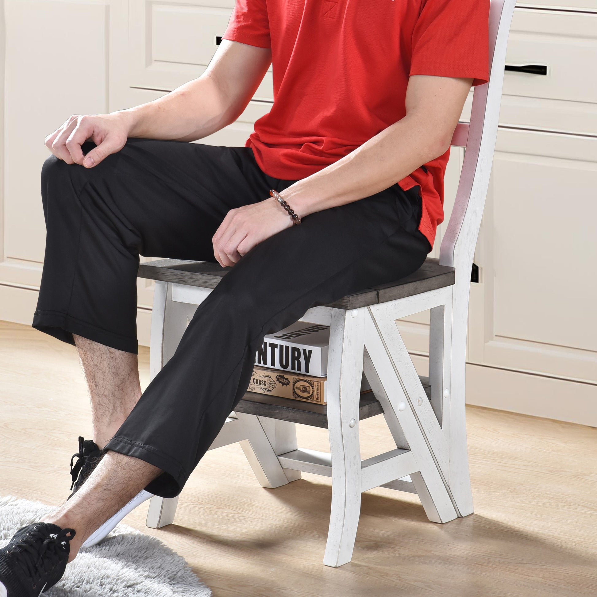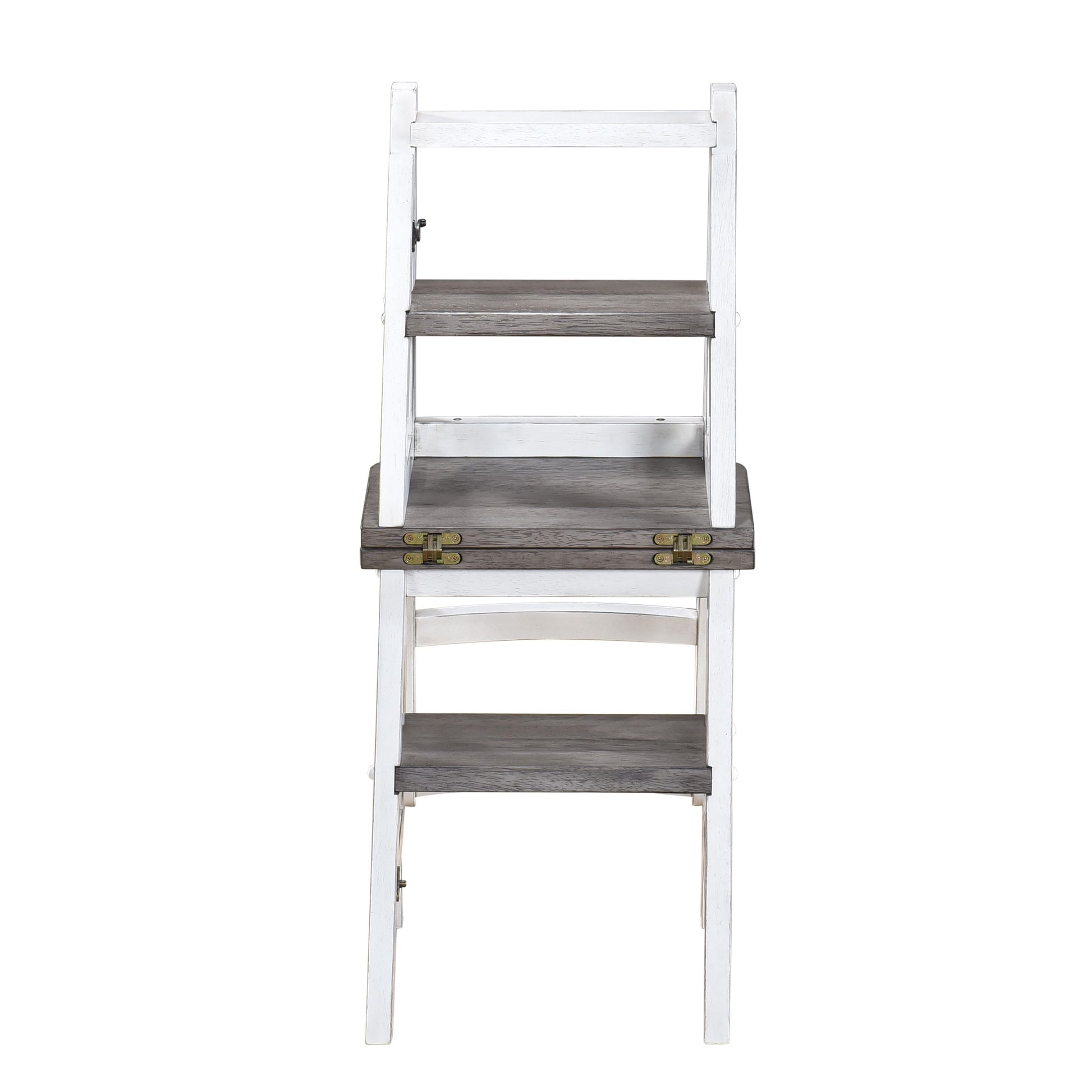 Solid Wood Foldable Ladderchair Dual Purpose Stepladders Step Display Stand Flower Stand Forhome, Library, Kitchen - Antique White / Sandstone