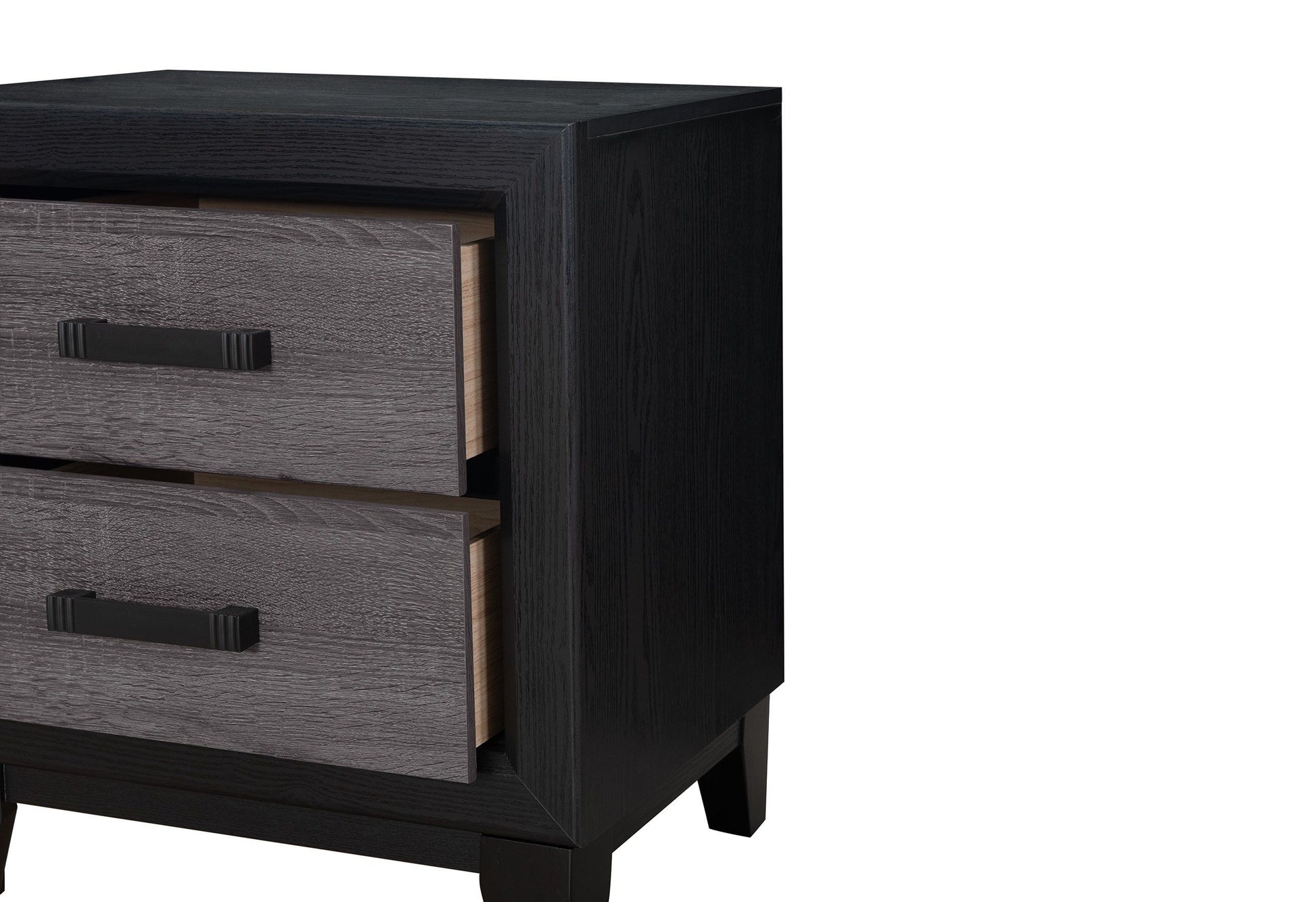 - Functional Storage: Equipped with two spacious drawers, the nightstand offers ample storage space, complemented by sleek metal hardware for easy access.