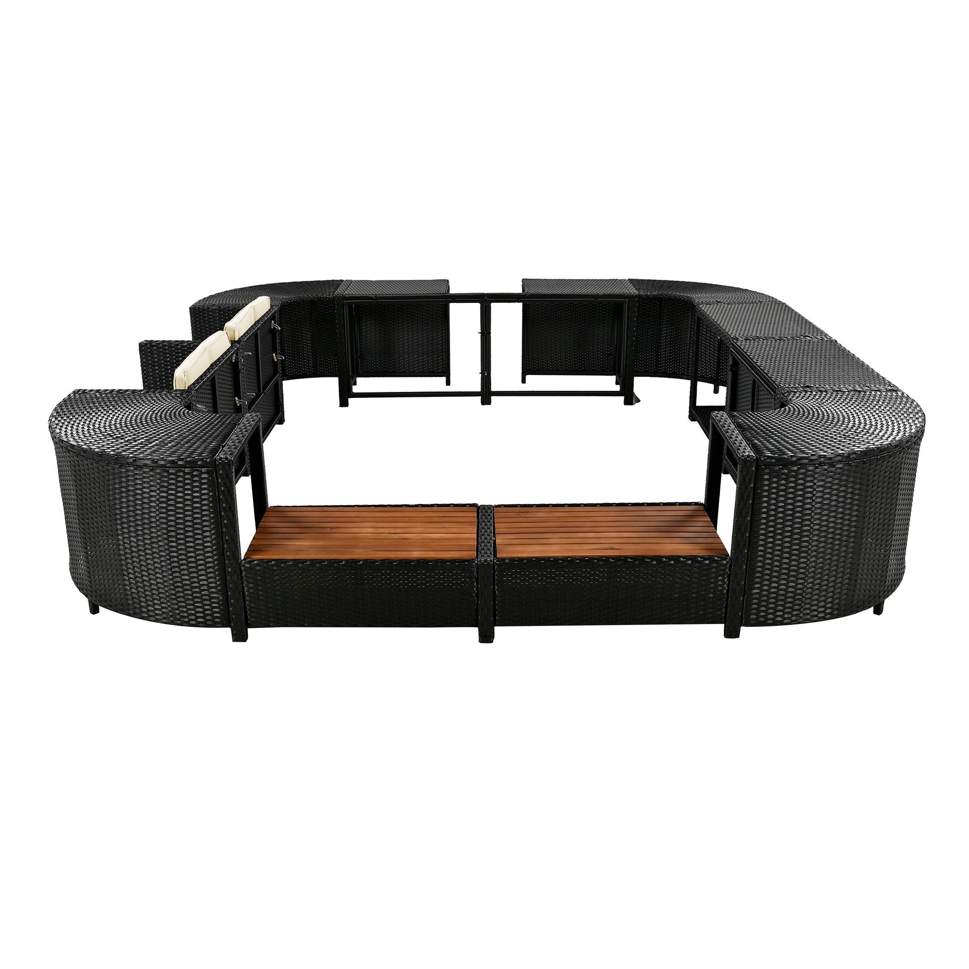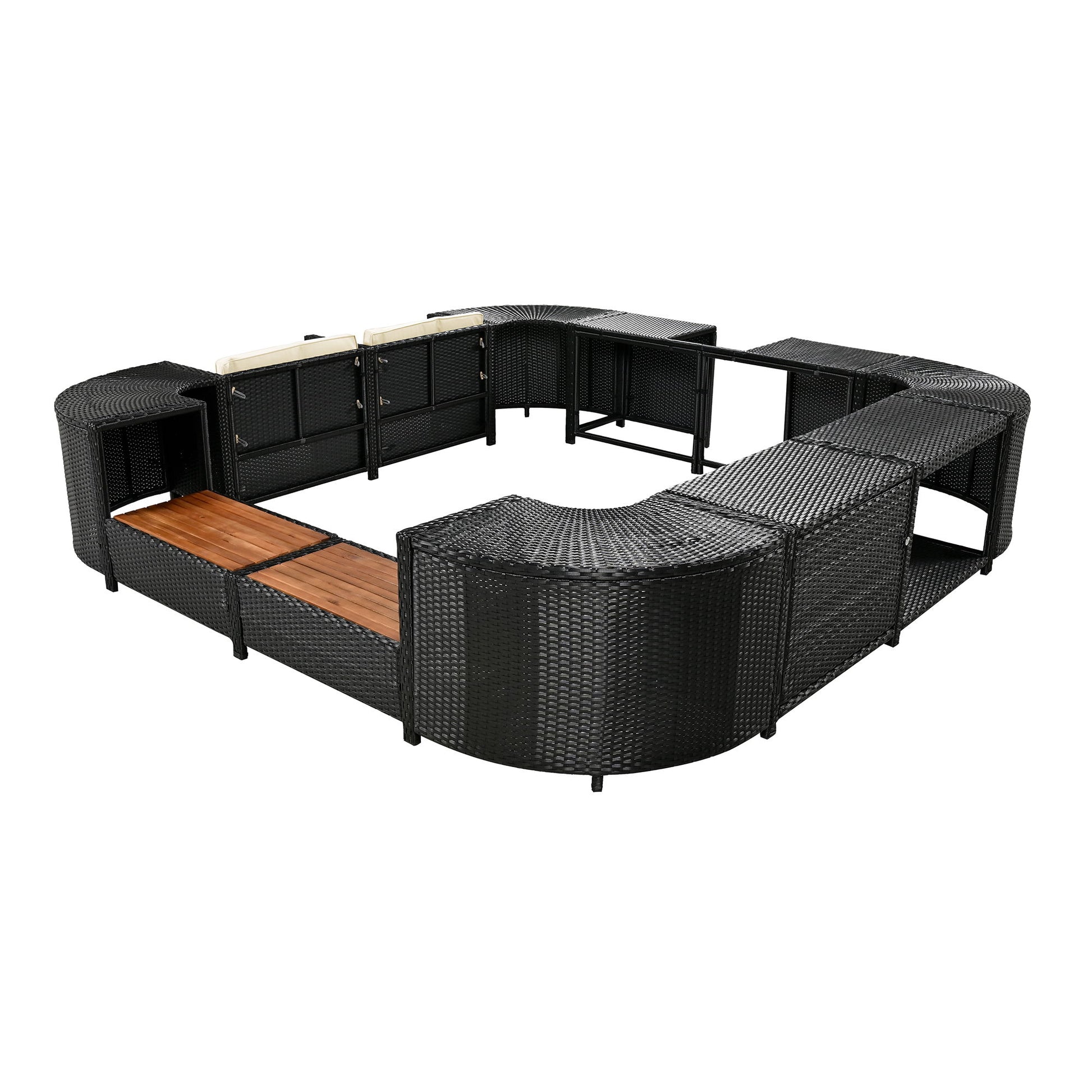 Spa Surround Spa Frame Quadrilateral Outdoor Rattan Sectional Sofa Set With Mini Sofa, Wooden Seats And Storage Spaces - Beige