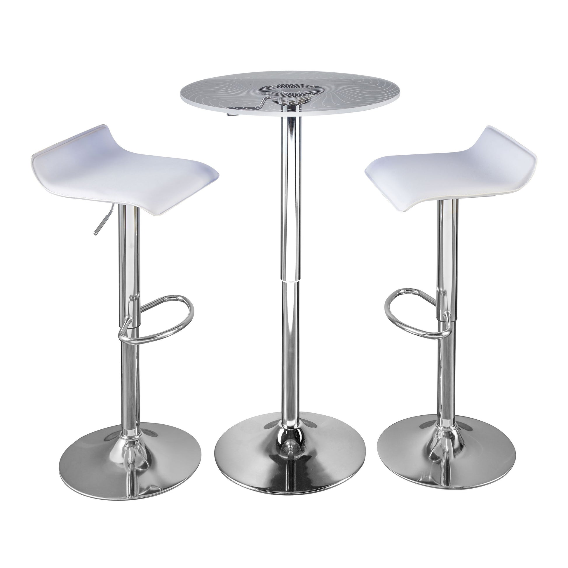 - Stylish Design: The Spyra-Ale Bar Set by LumiSource features a modern and contemporary styling with enchanting etched swirls on the acrylic tabletop, creating a captivating color-phase effect. This set is designed to enhance the aesthetics of any indoor space.