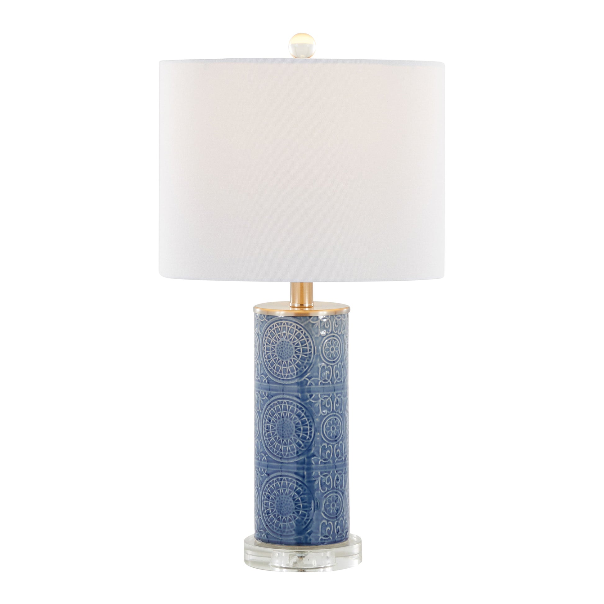 - Stylish Design: The Spyro Table Lamp features a unique cylindrical ceramic body with an embossed design, complemented by a genuine crystal base. Its contemporary style adds an eye-catching element to any room, whether it's a bedroom, living room, or office.