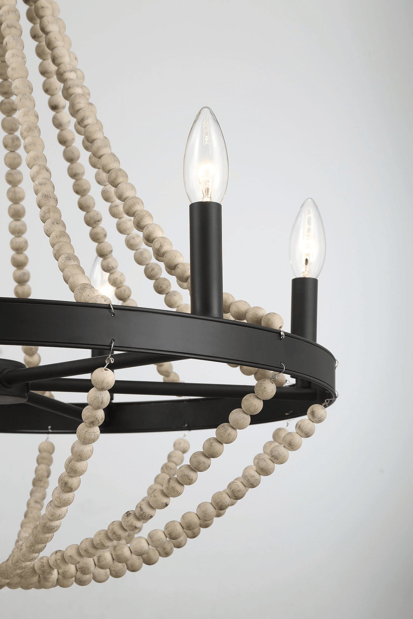 Starry - Chandelier Farmhouse Six Candle Light Wood Beaded Pendant Light For Dining Room - Black / Clear