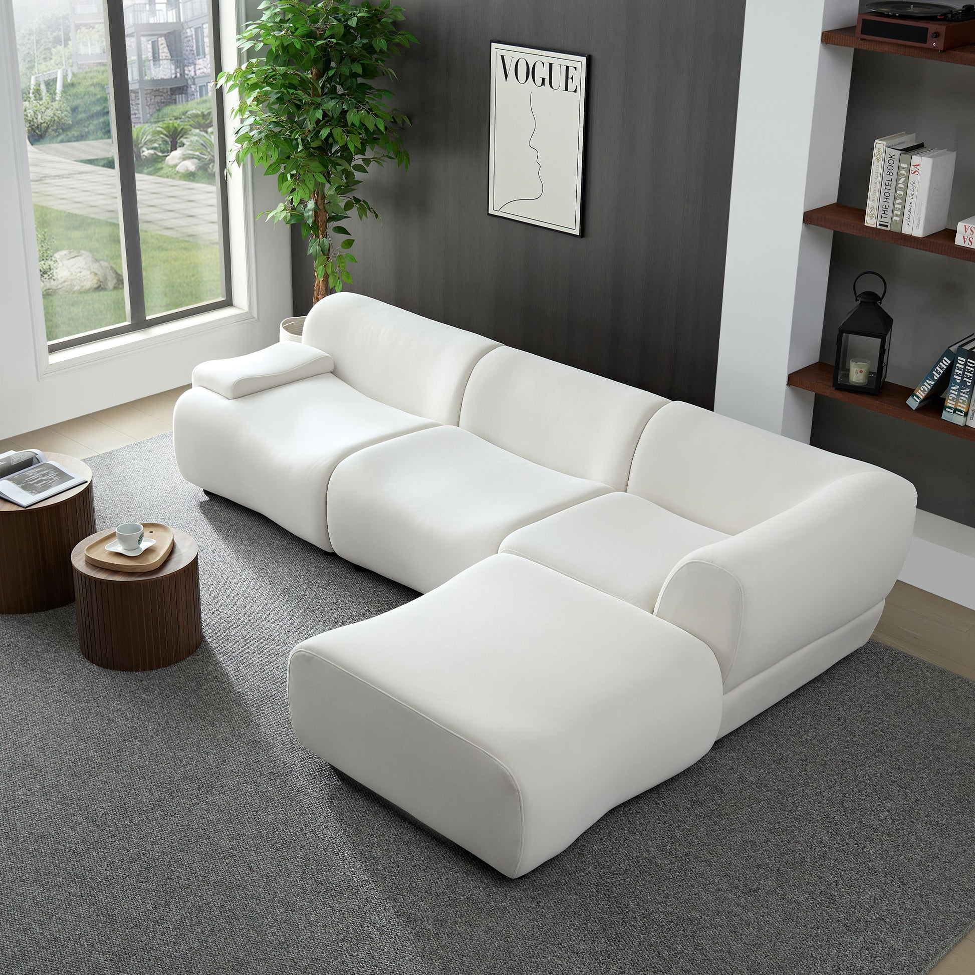 Strong Durable Fabric 4 Seat Sectional Sofa With High Density Sponge And Solid Wood Frame - White