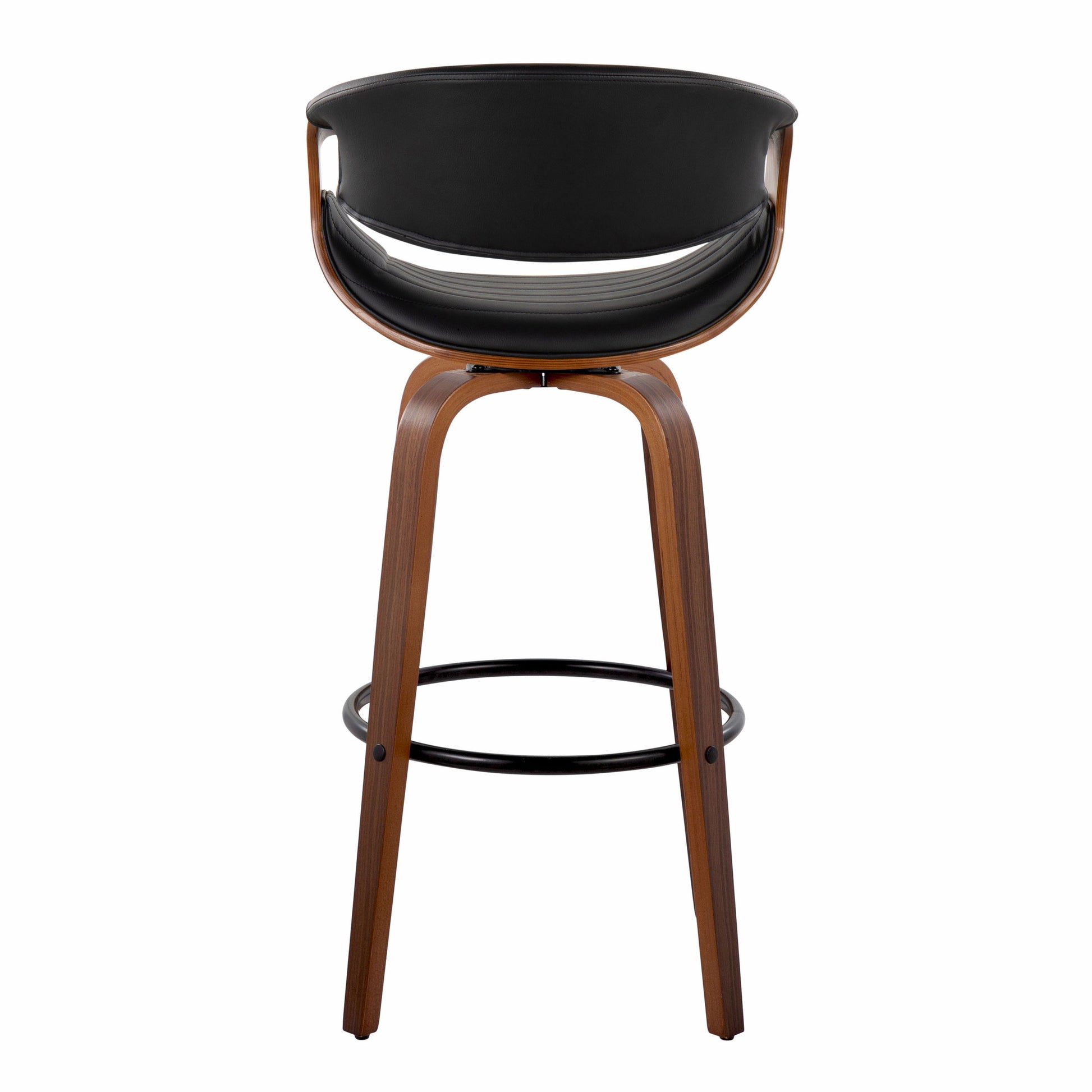 Symphony - Mid-Century Modern Fixed Height Barstool With Swivel And Round Footrest (Set of 2) - Walnut / Black