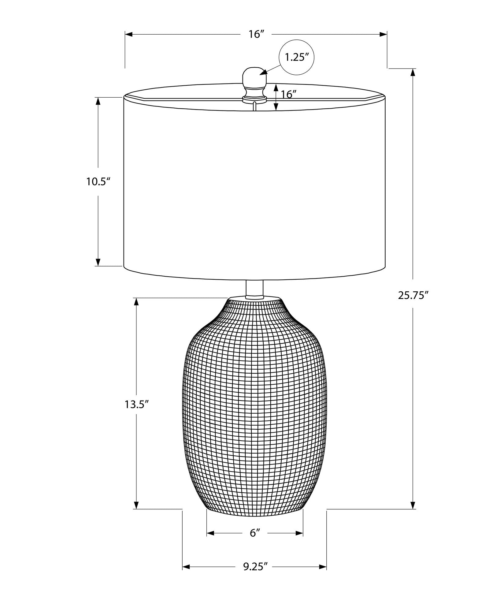 - Dimensions: Assembled dimensions are 16" L x 16" W x 25" H, with the base measuring 9.25" L x 9.25" W x 13.5" H and the shade measuring 16" L x 16" W x 10.5" H.