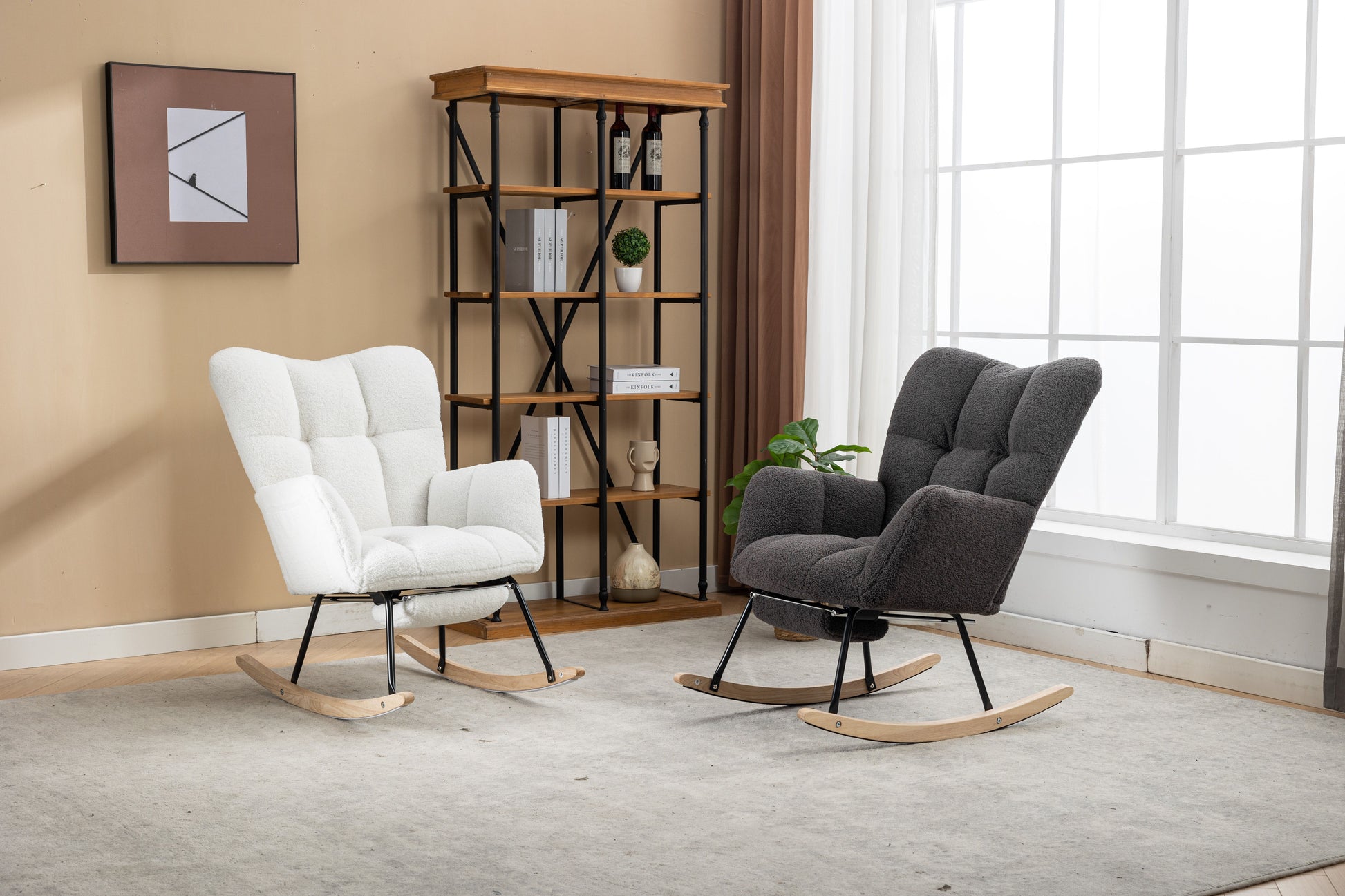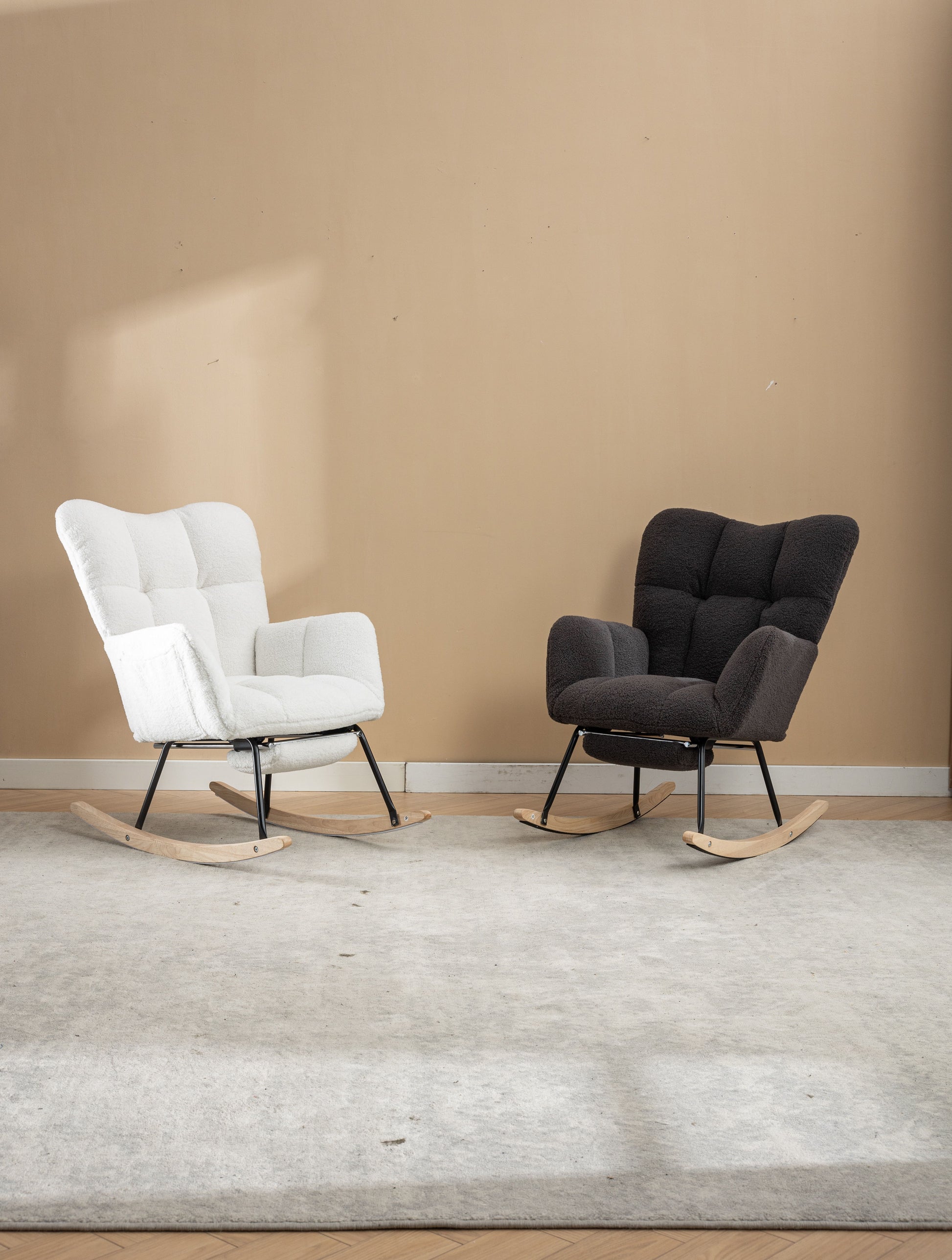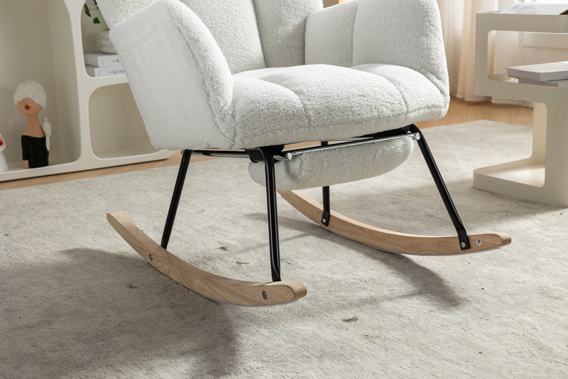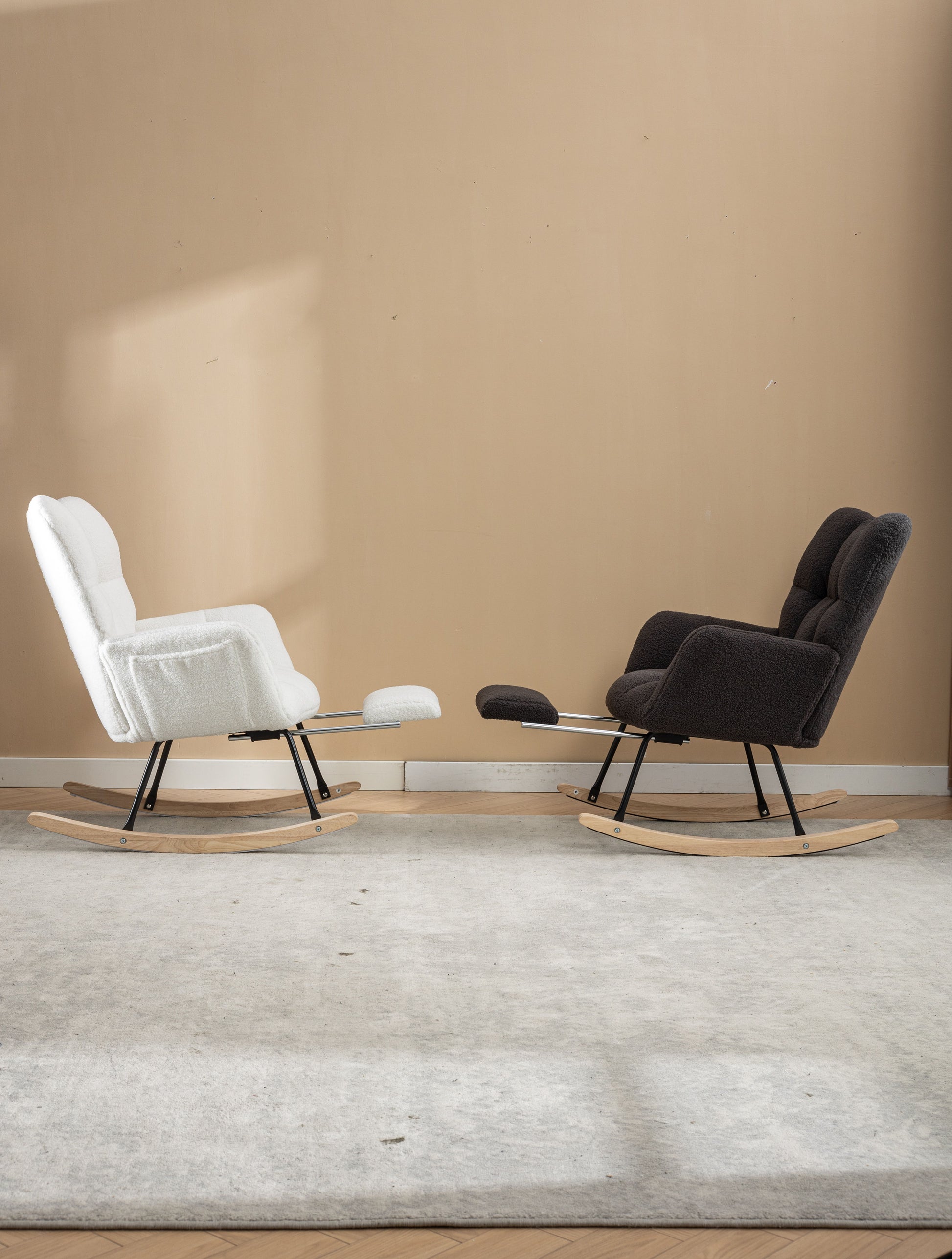 Teddy Fabric Rocking Chair With Adjustable Footrest - Ivory