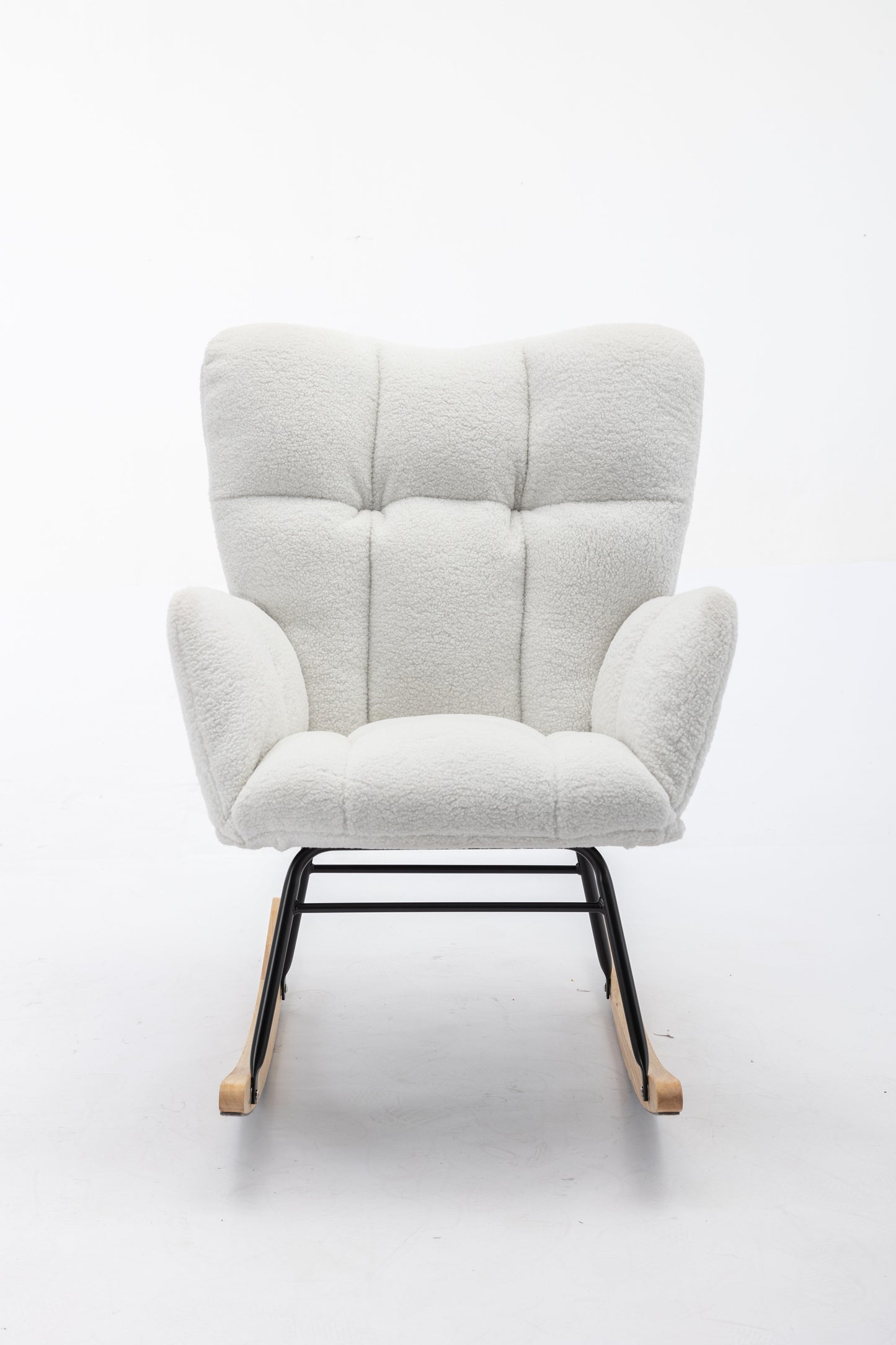 Teddy Fabric Rocking Gilder Nursery Chair For Living Room Indoor - Ivory