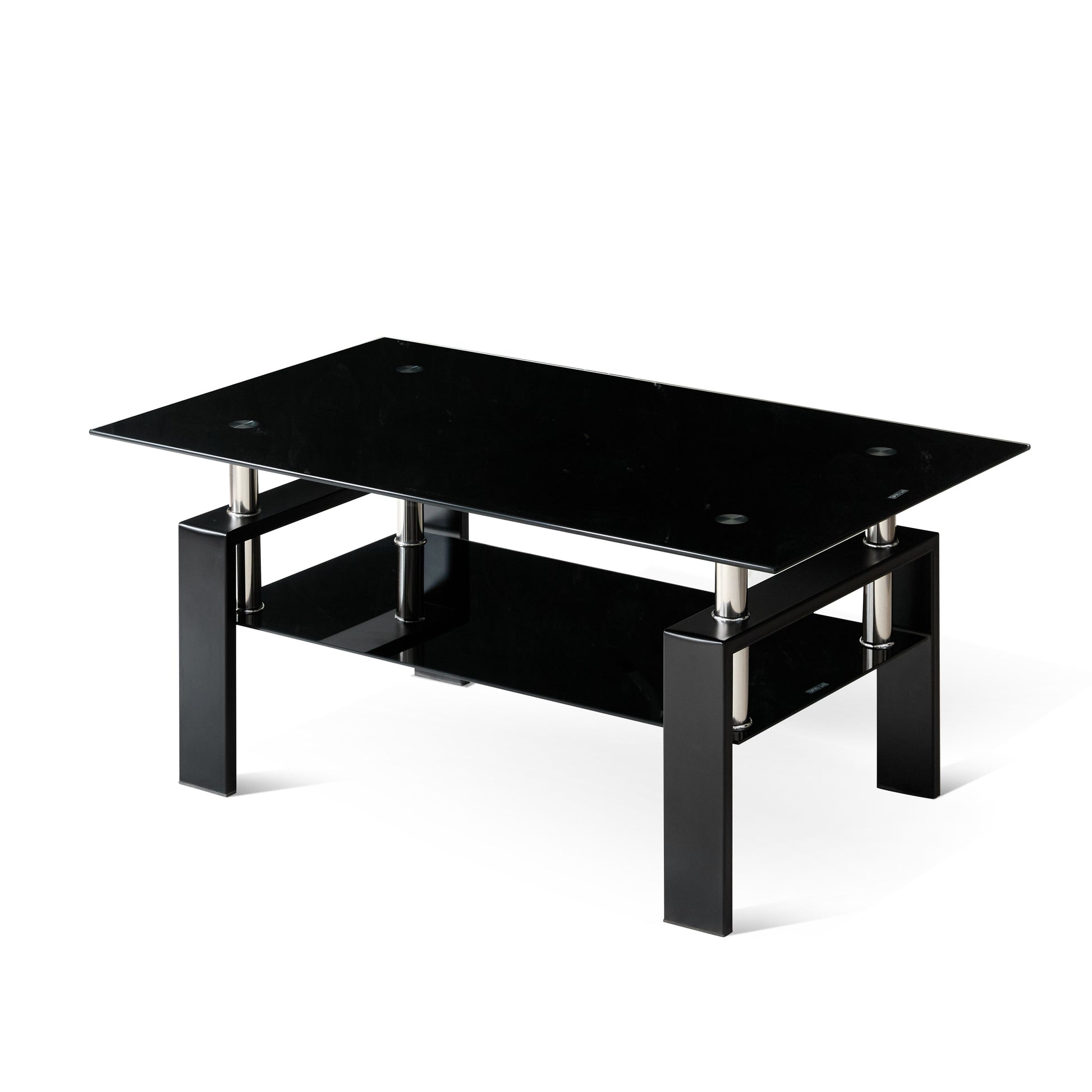 Tempered Black Glass Coffee Table, 2-Layers Tea Table - Black