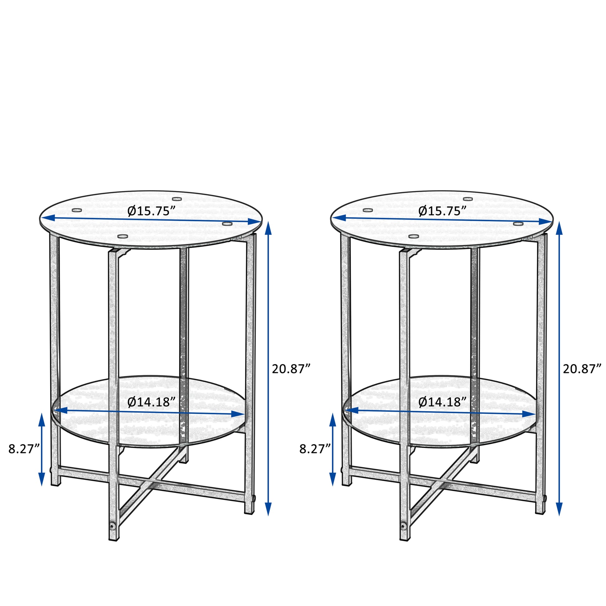 Tempered Glass End Table (Set of 2), Round Coffee Table For Bedroom Living Room Office - Black
