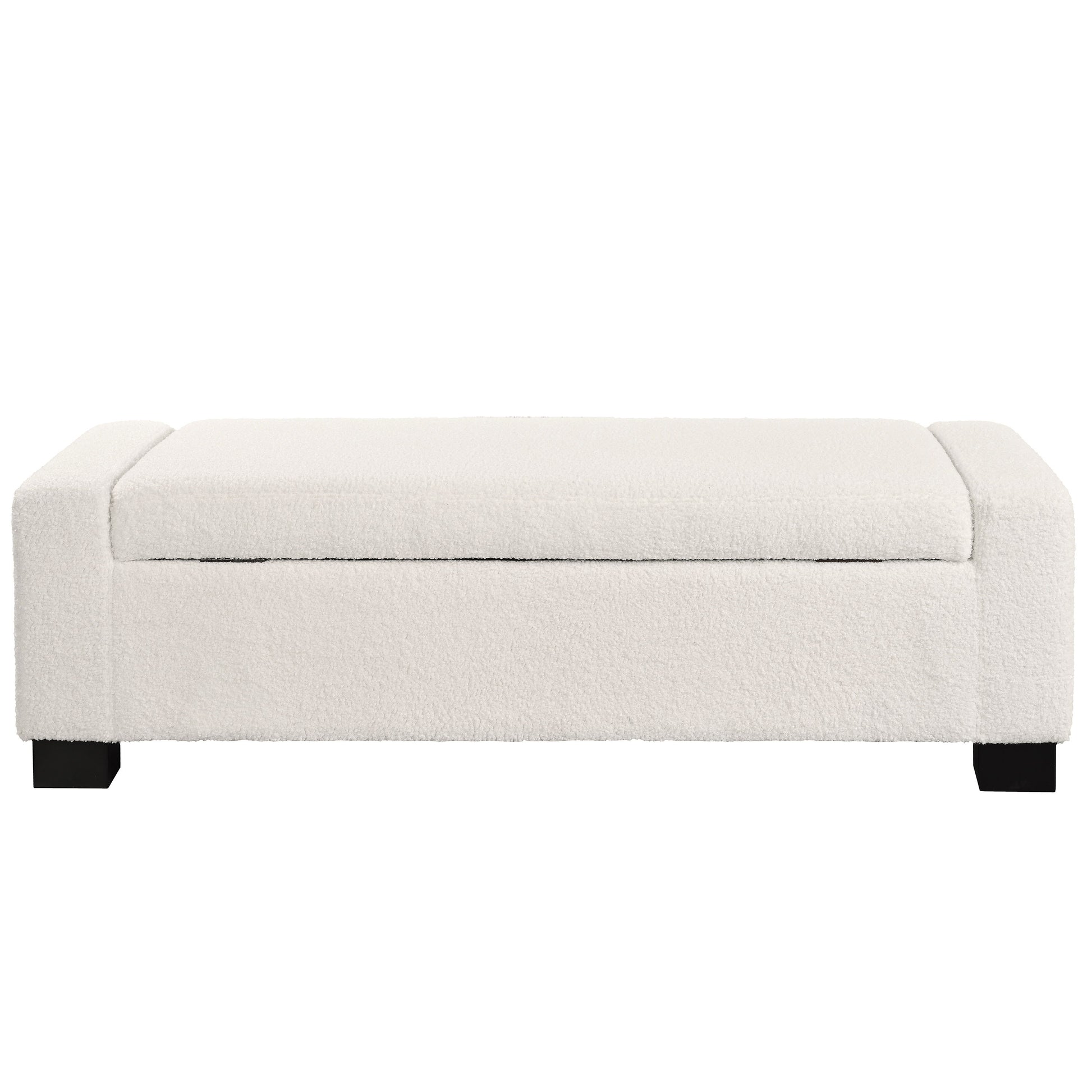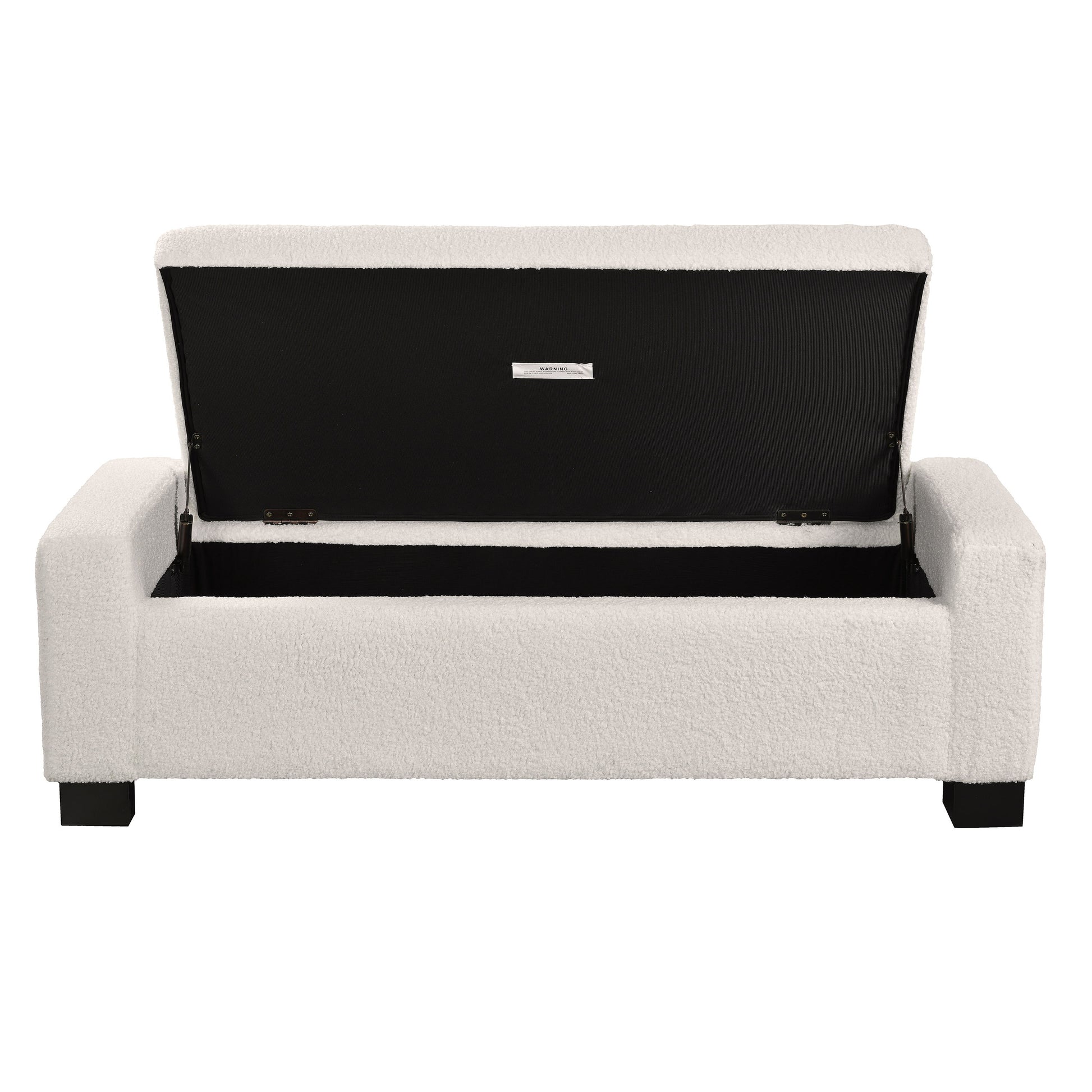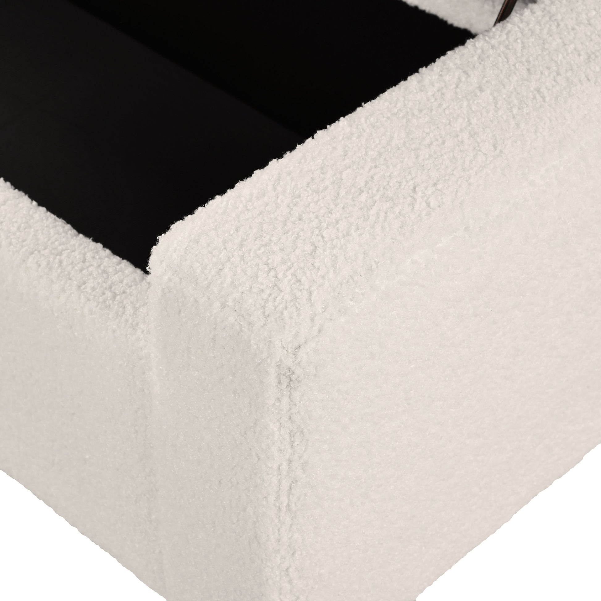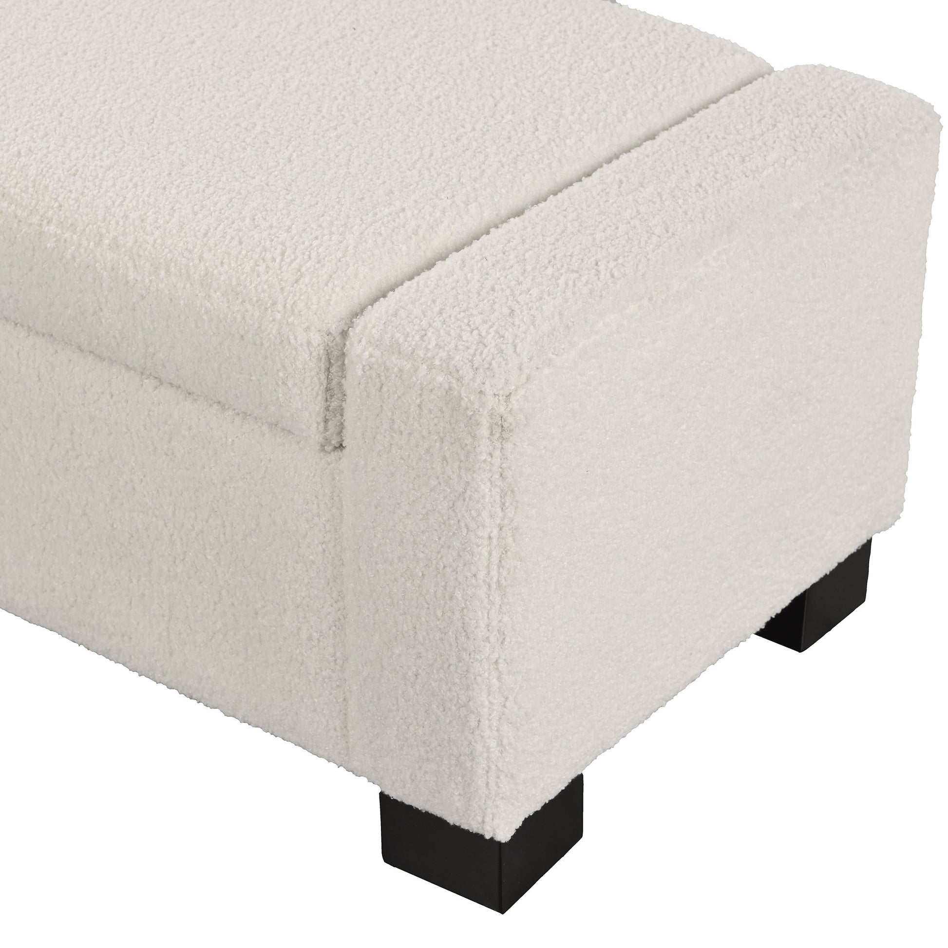 Textured Boucle Ottoman Bench With Hinged Lid For Seating And Storage - Beige