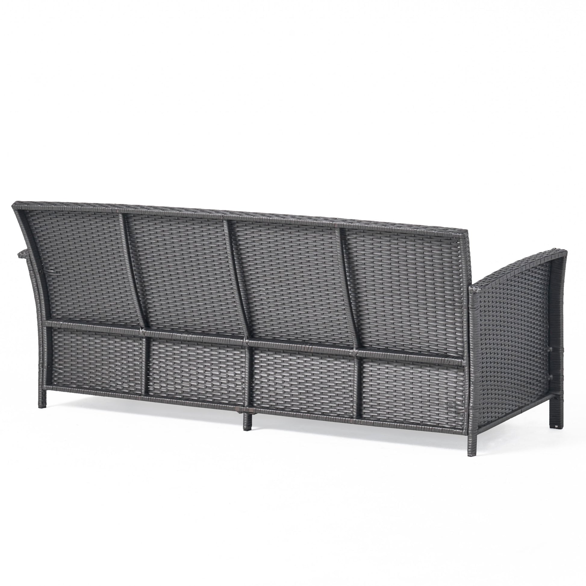 - Frame: Detail Built with a powder-coated steel frame and high-density polyethylene wicker, this sofa offers exceptional durability against sun, rain, and humidity while maintaining its elegant appearance season after season.