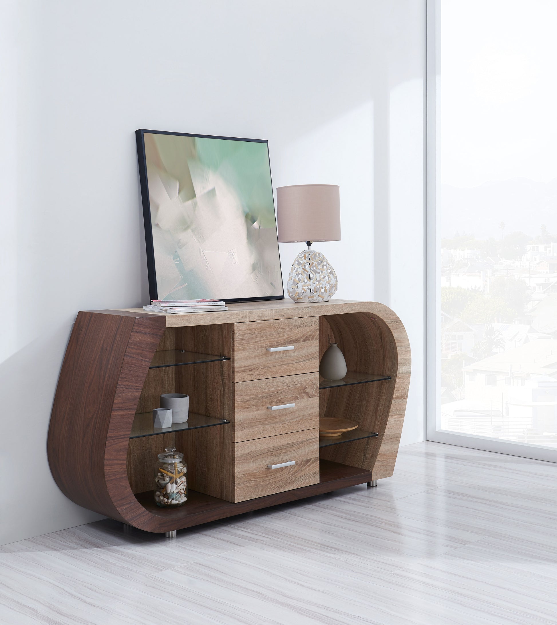 - Materials and Finish: The TONY BUFFET is crafted from high-quality MDF wood and glass, featuring an elegant oak and walnut finish that adds a touch of sophistication to any room.