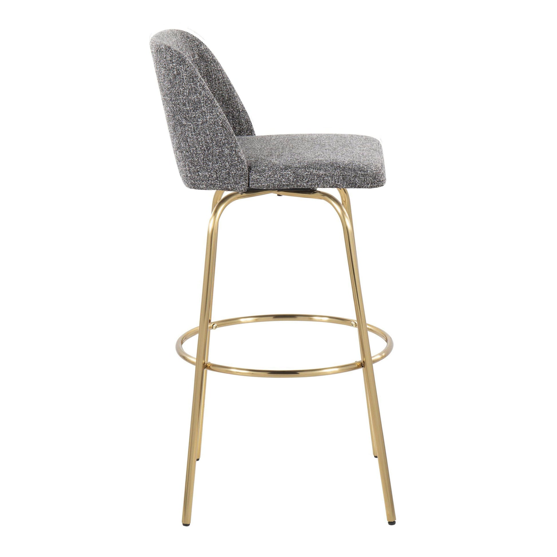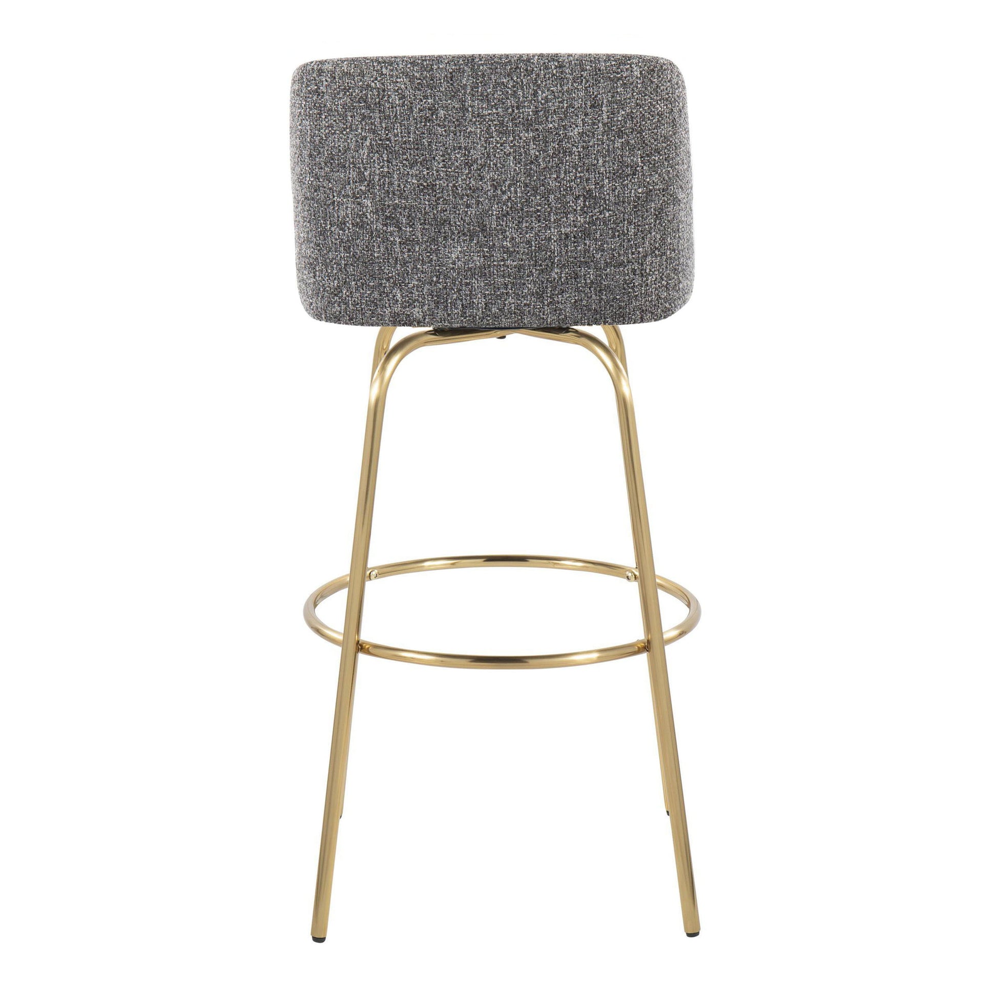 Toriano - Contemporary Fixed Height Barstool With Swivel With Round Footrest (Set of 2) - Gray / Gold