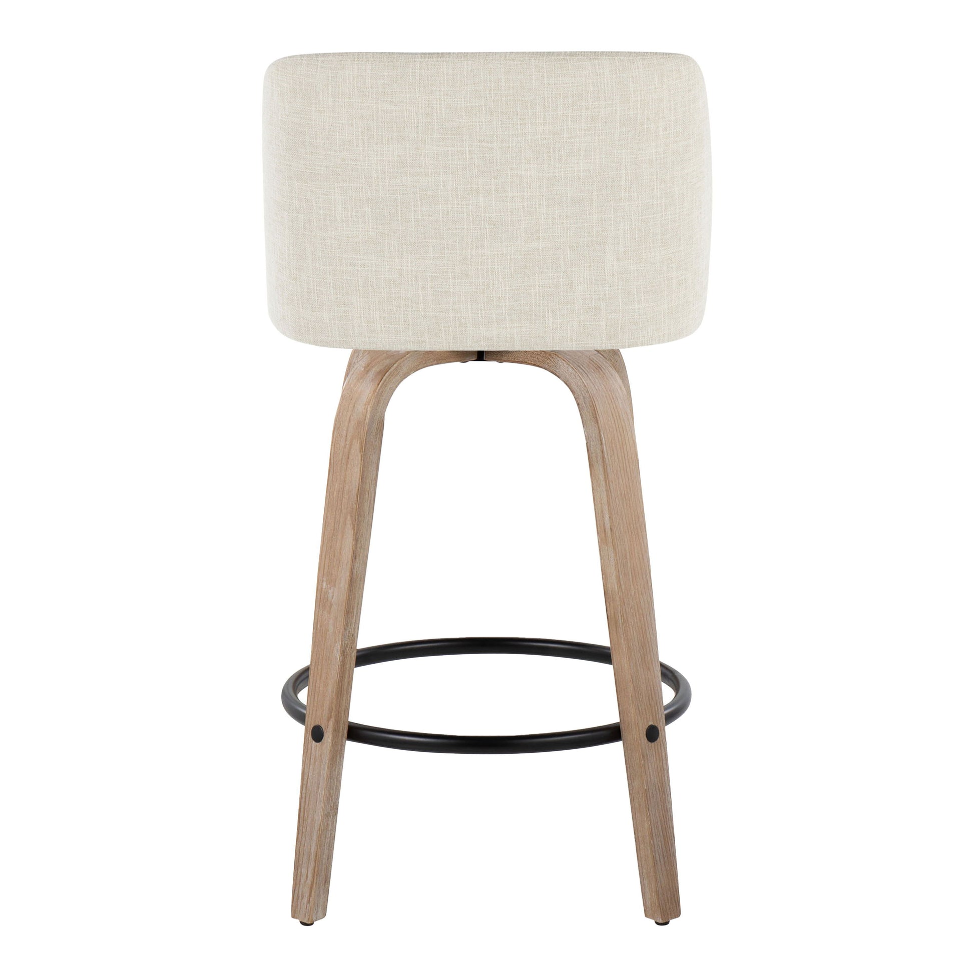Toriano - Contemporary Fixed Height Counter Stool Swivel With Round Footrest (Set of 2) - Whitewashed / Cream