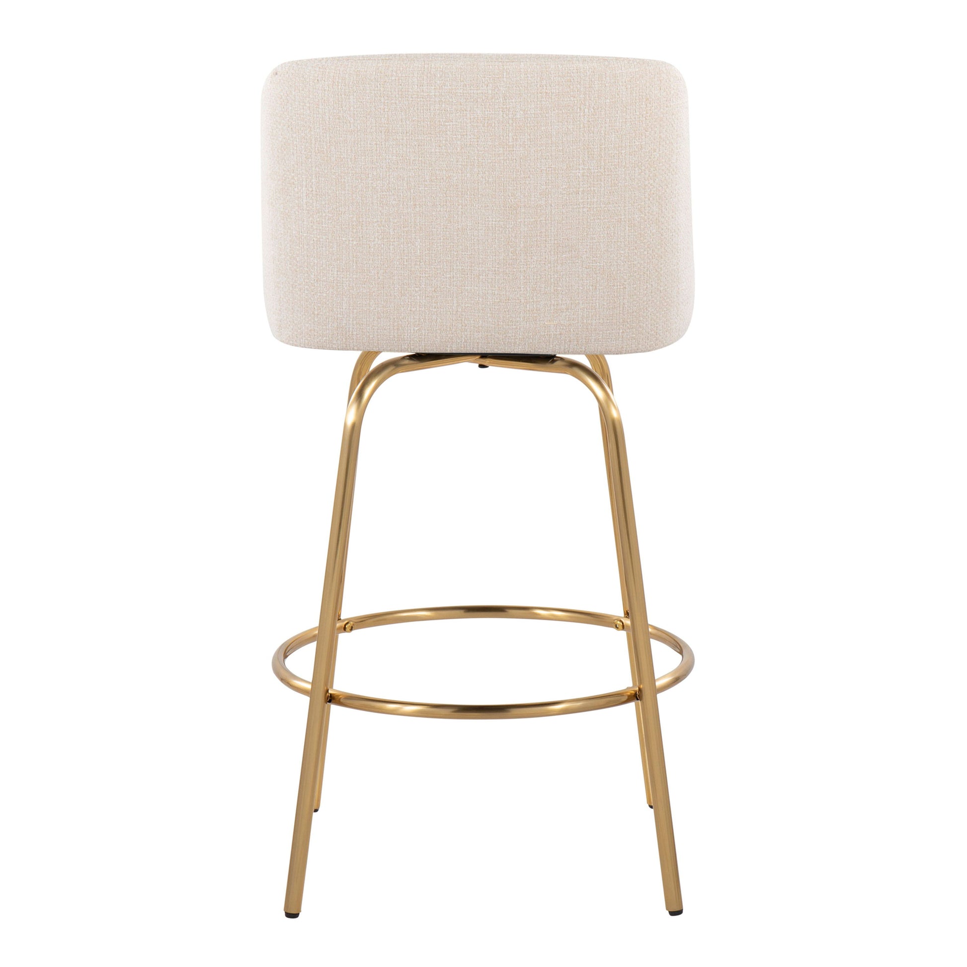 Toriano - Contemporary Fixed Height Counter Stool With Swivel And Round Footrest (Set of 2) - Cream / Gold