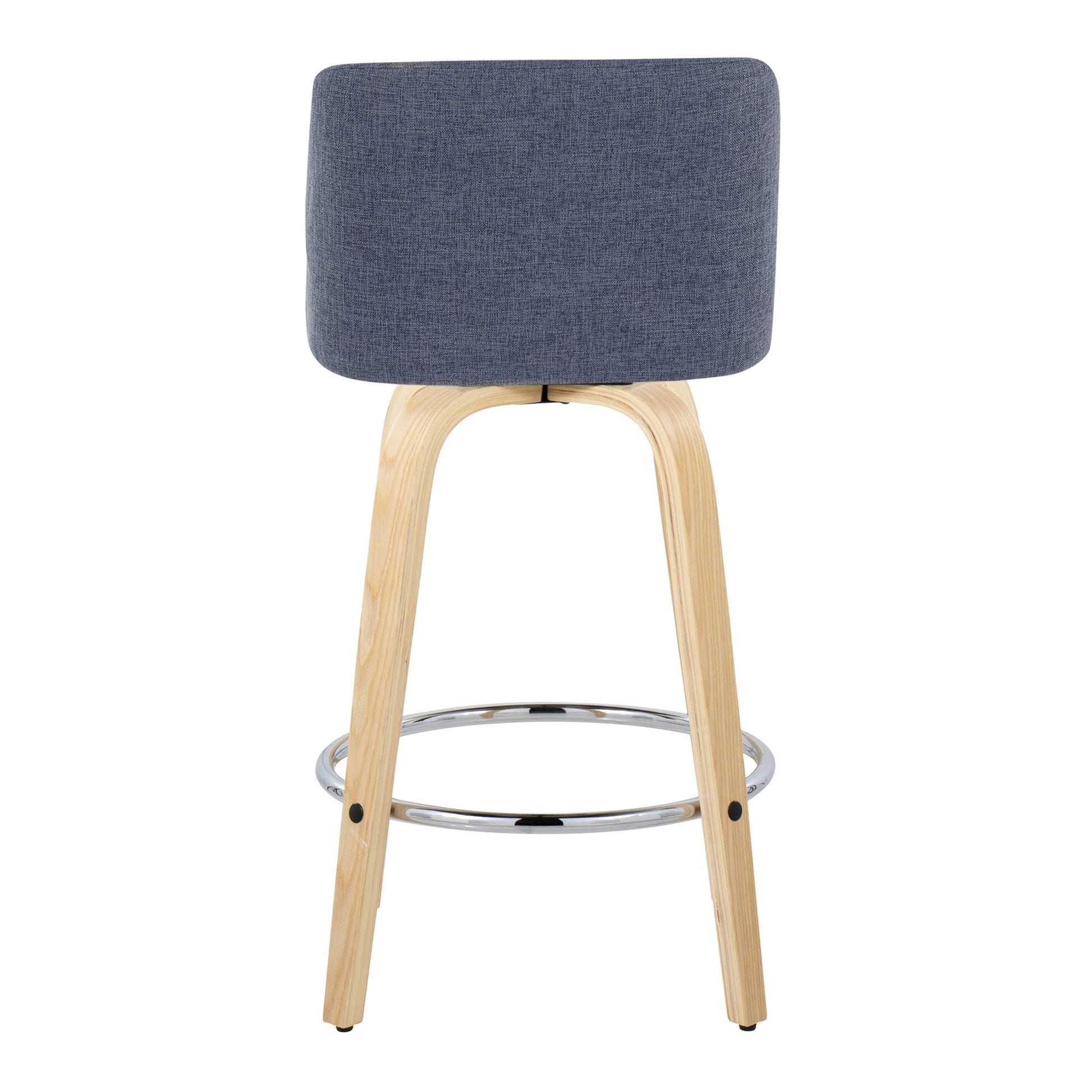 Toriano - Contemporary Fixed Height Counter Stool With Swivel & Round Footrest (Set of 2) - Natural / Blue
