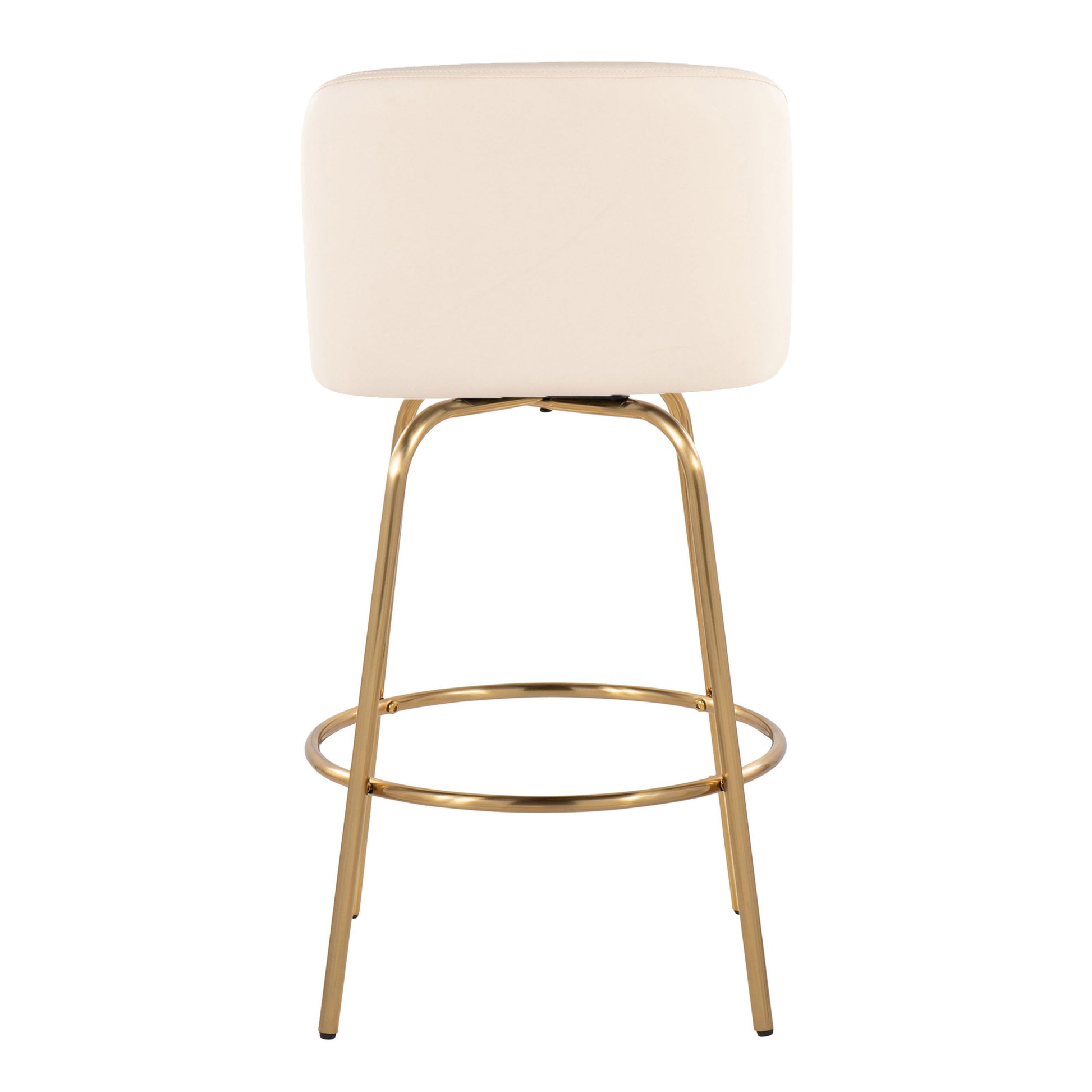 Toriano - Contemporary Fixed Height Counter Stool With Swivel With Round Footrest (Set of 2) - Cream / Gold