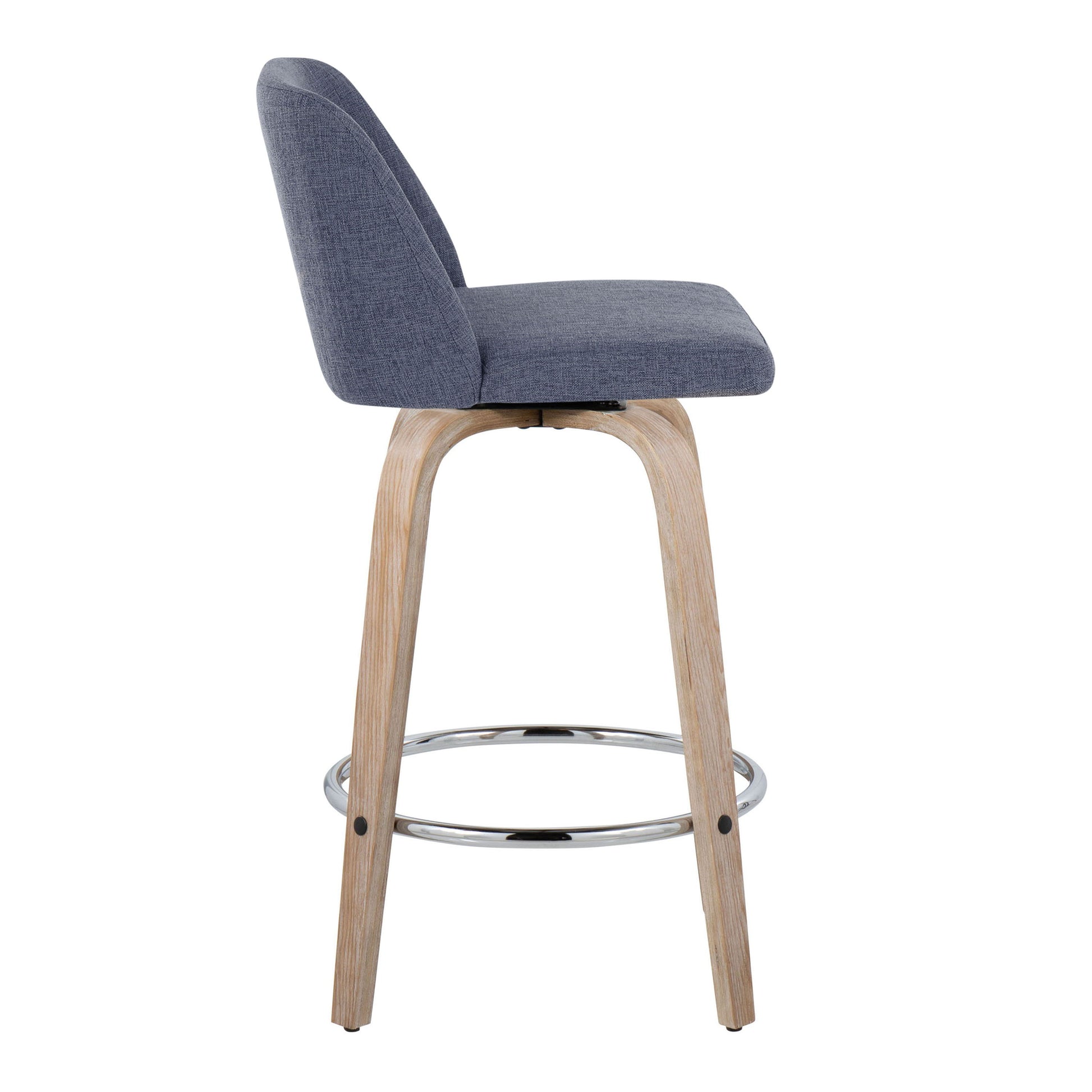 Toriano - Contemporary Fixed Height Counter Stool With Swivel With Round Footrest (Set of 2) - Whitewashed / Blue