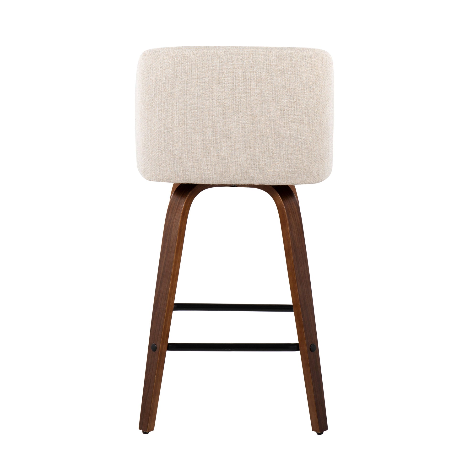 Toriano - Mid-Century Modern Fixed Height Counter Stool & Square Footrest (Set of 2) - Walnut / Cream