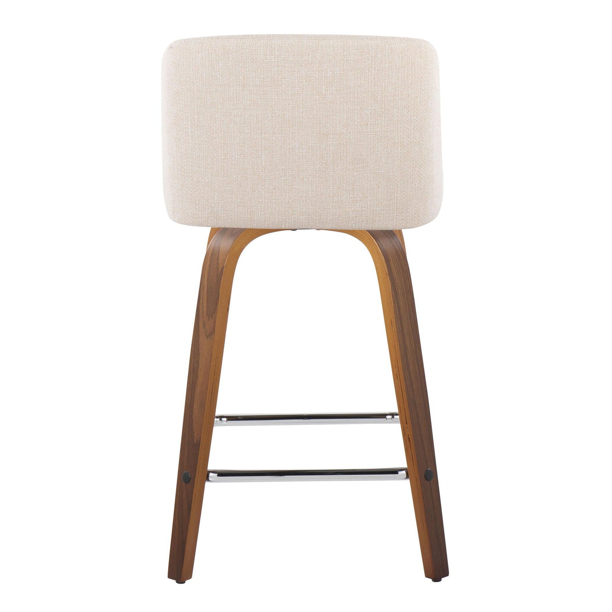 Toriano - Mid-Century Modern Fixed Height Counter Stool With Swivel And Square Footrest (Set of 2) - Walnut / Cream