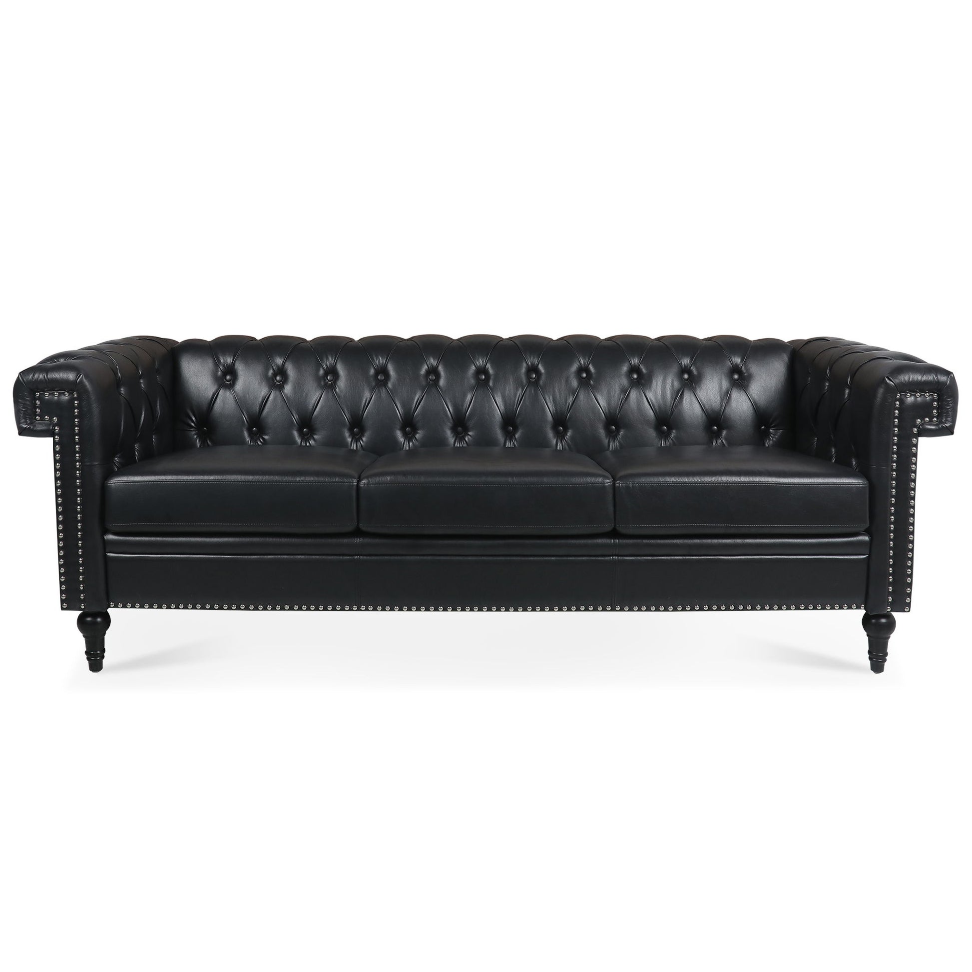 Traditional Square Arm Removable Cushion 3 Seater Sofa - Black