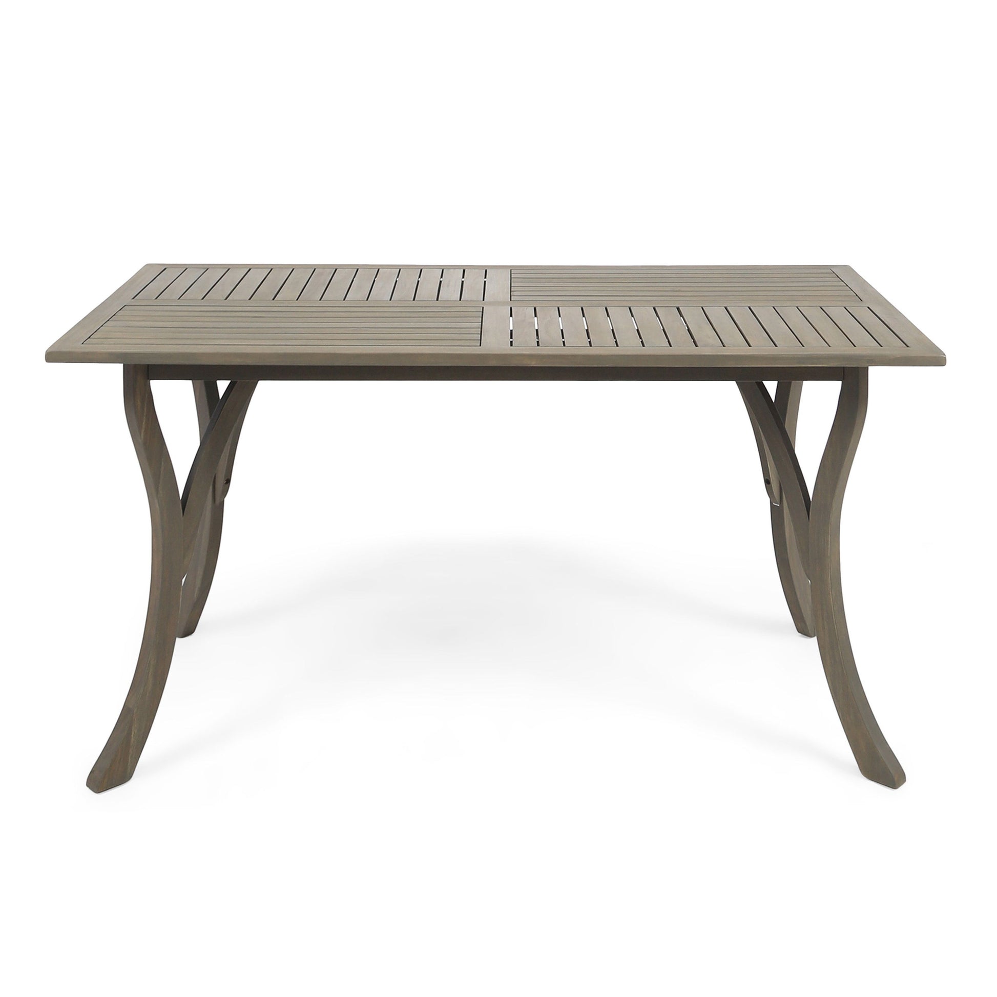 Transitional Acacia Wood Dining Table With Slat Panel Top - Gray