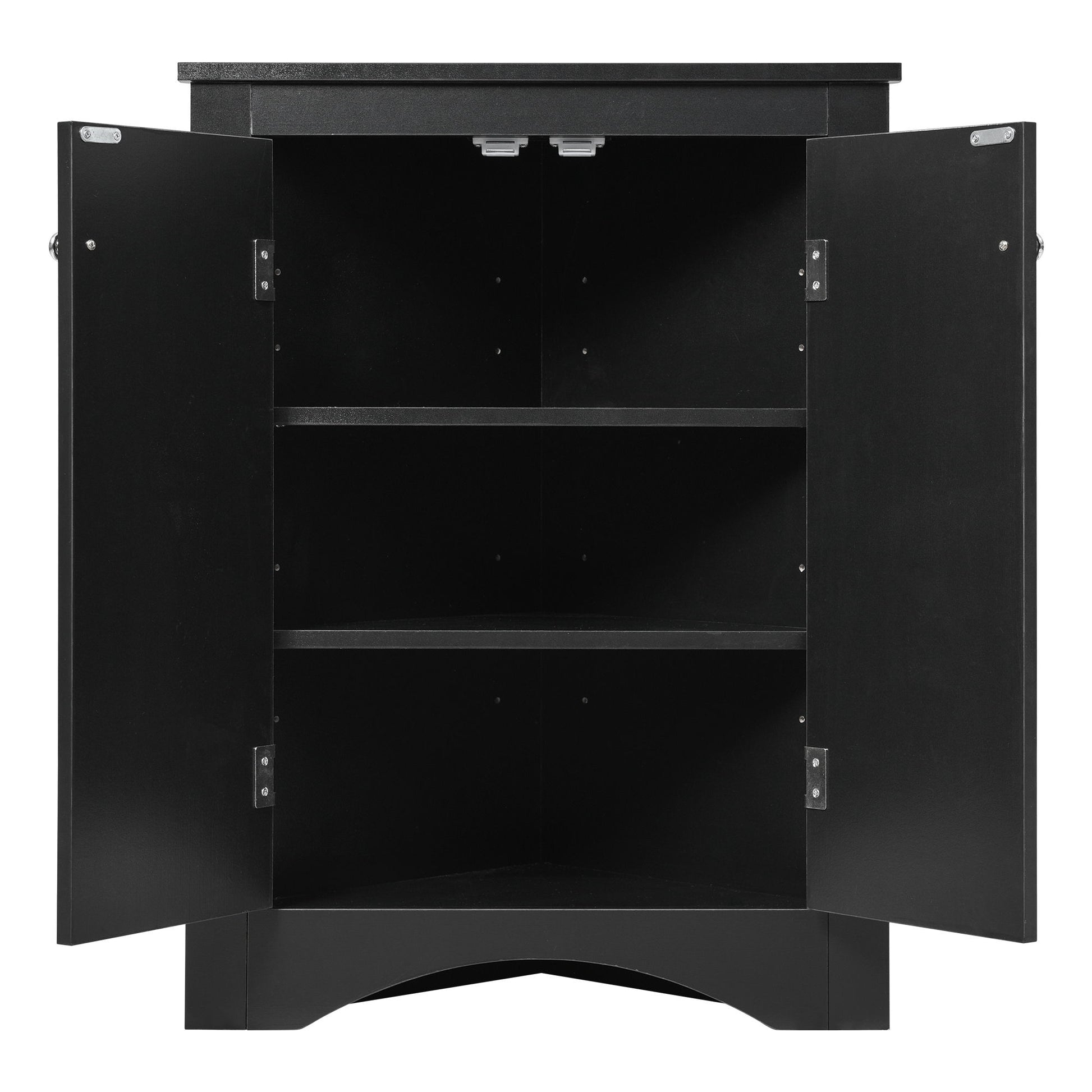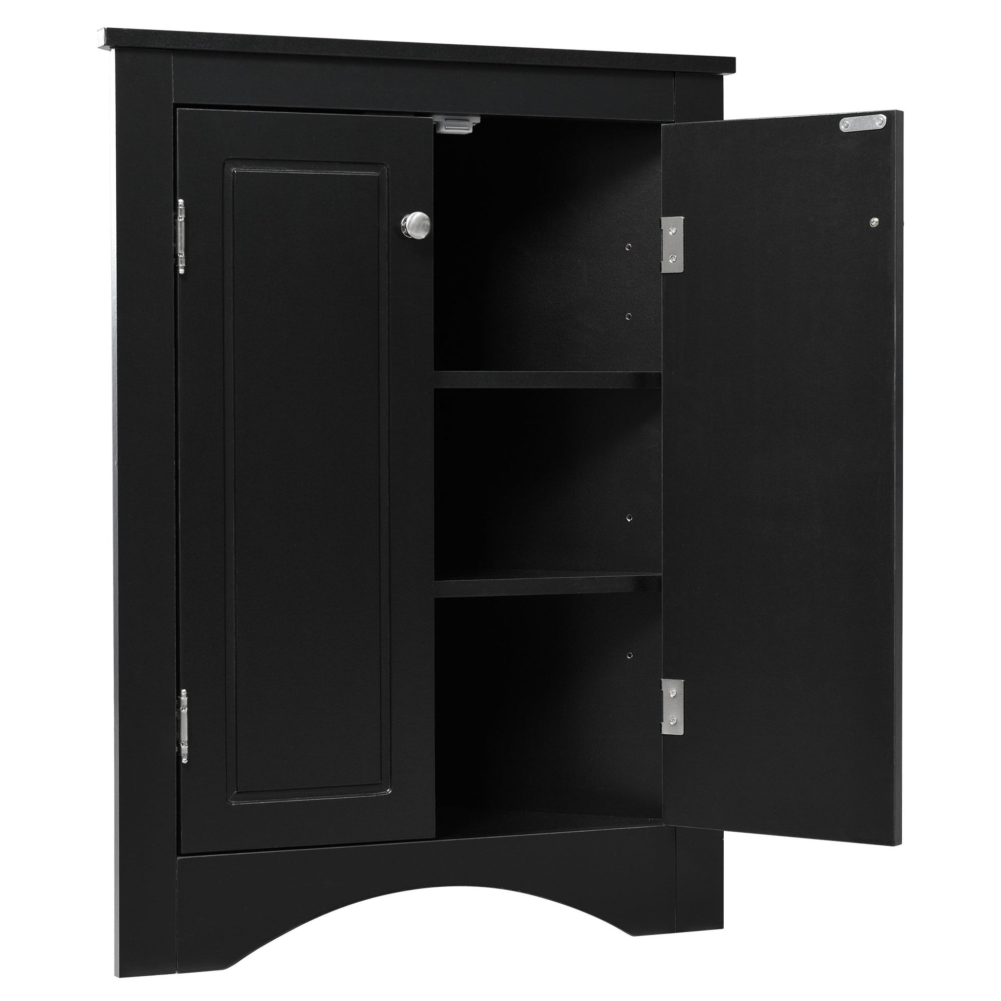 Triangle Bathroom Storage Cabinet With Adjustable Shelves, Freestanding Floor Cabinet For Home Kitchen - Black