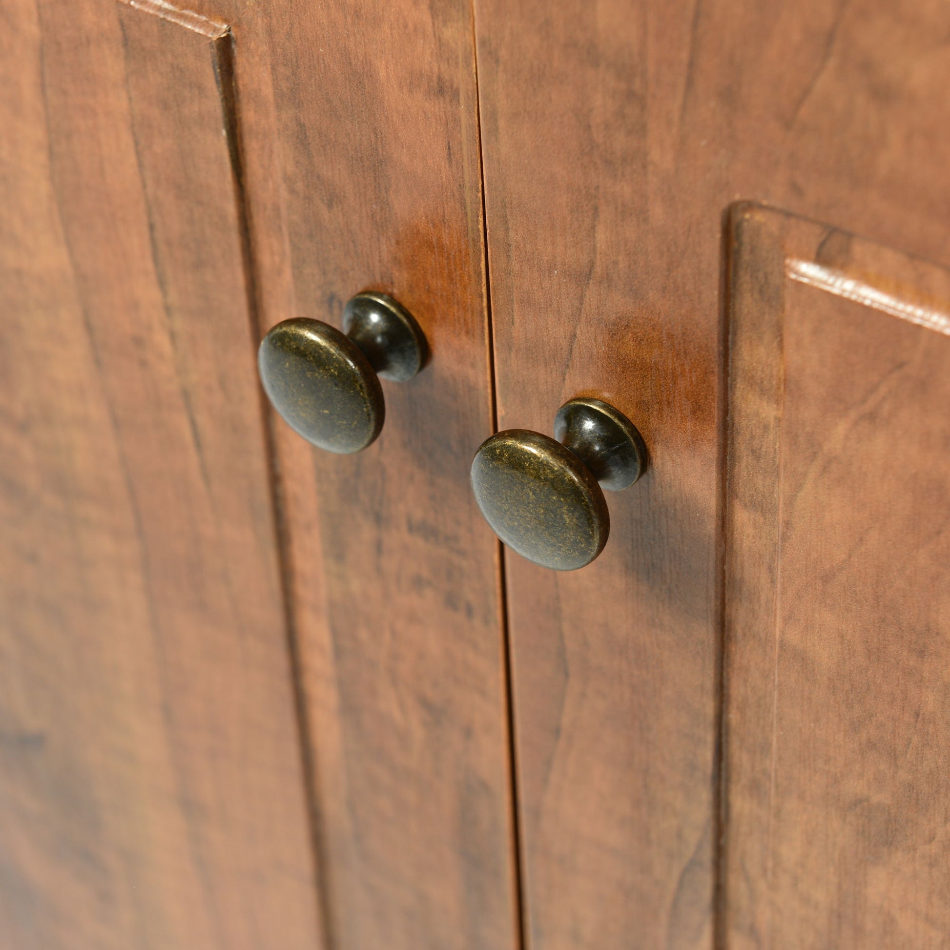 Affordable Cabinet: Designed to meet both visual and functional needs, this corner storage cabinet includes inside adjustable shelves and metal knobs for easy opening and closing.