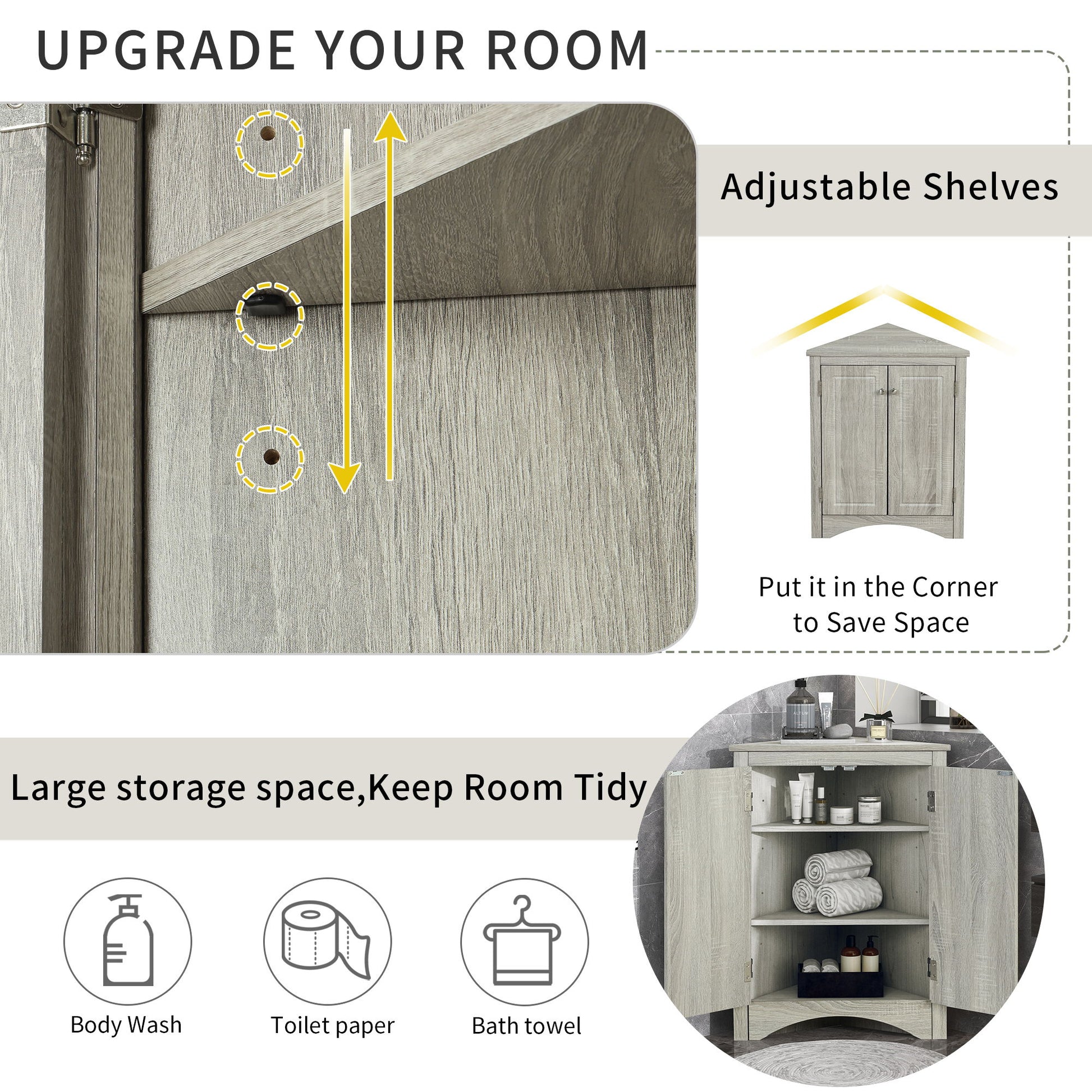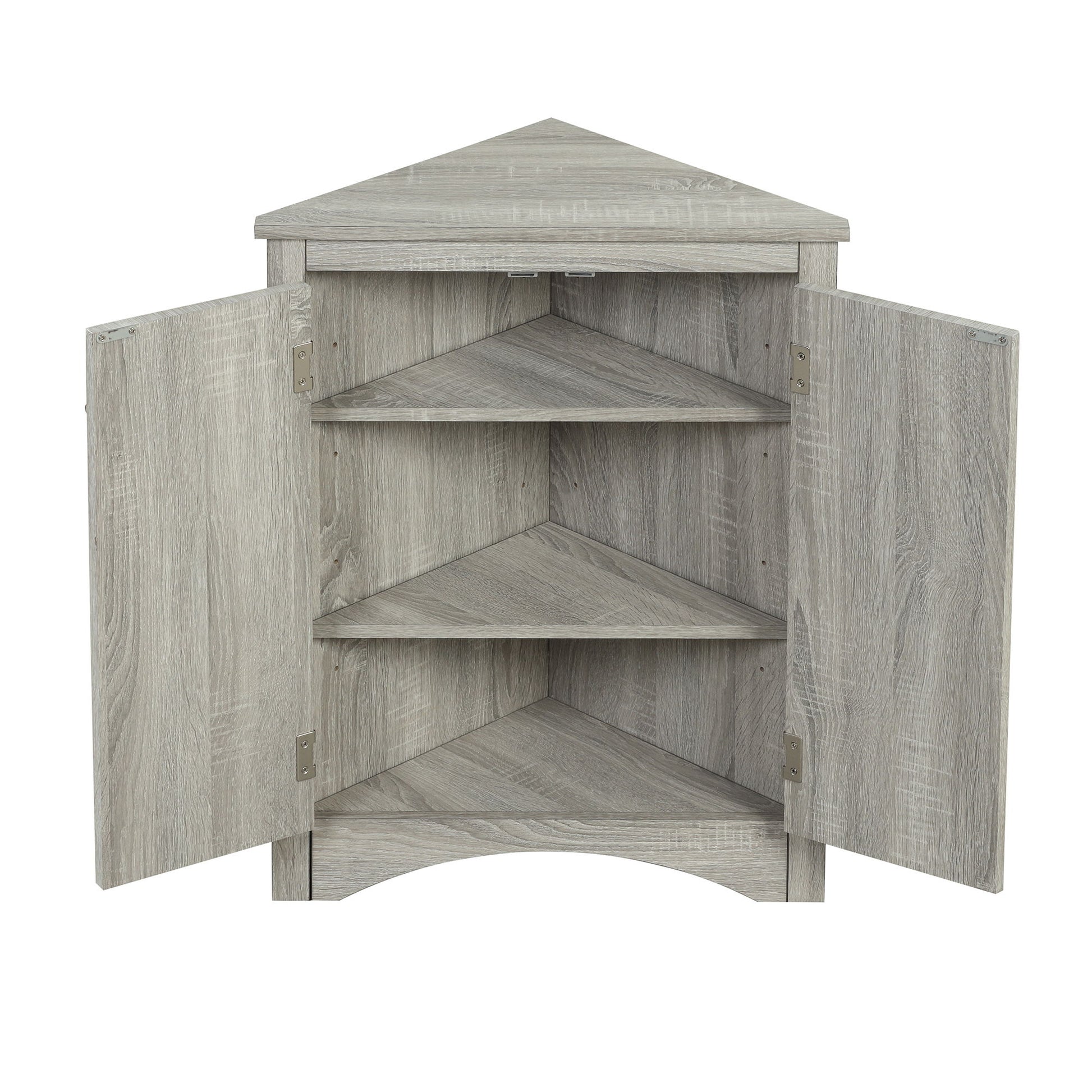 Triangle Bathroom Storage Cabinet With Adjustable Shelves, Freestanding Floor Cabinet For Home Kitchen - Oak