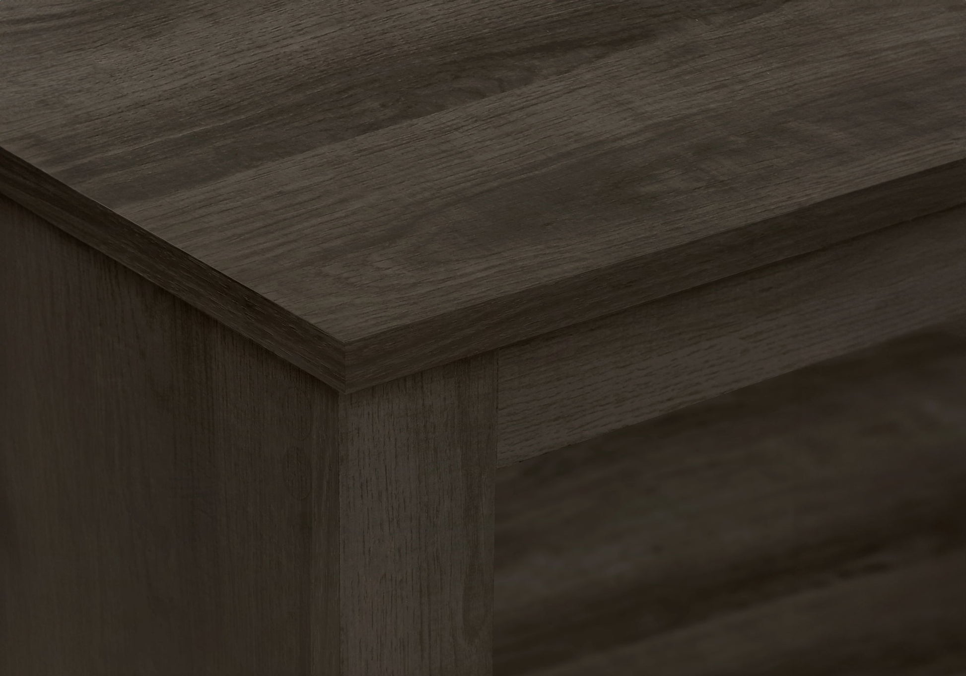 - Versatile Placement: Brown Oak finish allows it to be placed against the wall or in a corner to save space.